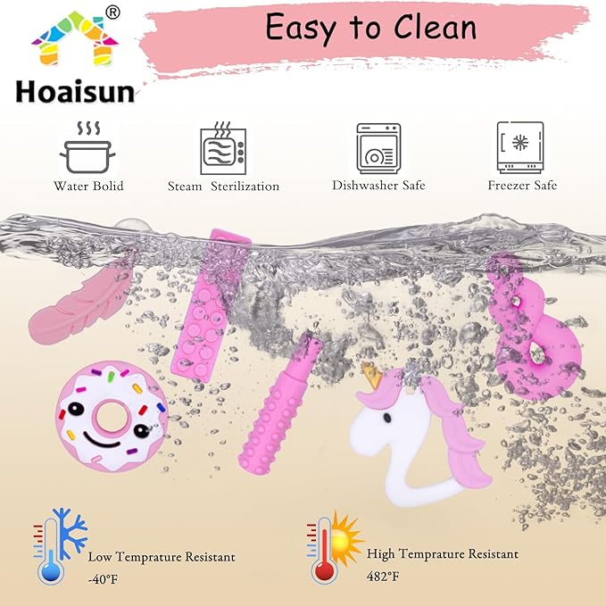 - Widely applications - Hoaisun teething neckalce for baby tocome in a variety of styles, can be used for any age. Autism adult chew necklace can be used as a stim toys, or as an oral motor therapy tools for kids with autism. And it is also a very suitable toddler chew necklace, which can relieve the baby's teething pain, which will not hurt your baby's teeth.