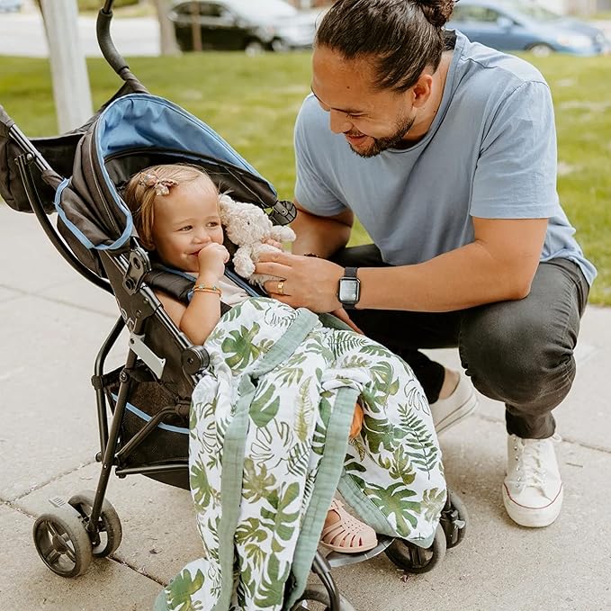 Little Unicorn Newborn Receiving Quilt | Ultra- Soft, Multi-Layered Muslin Fabric | Gift for Newborns & on-The-go (Tropical Leaf)