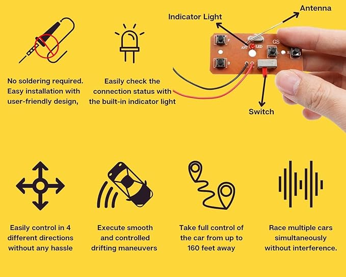 - Remote Control: The F1 car kit comes with a remote control that allows users to control the car's movements, making it a fun and engaging toy for kids and adults alike. The remote control is easy to use, making it accessible to everyone.