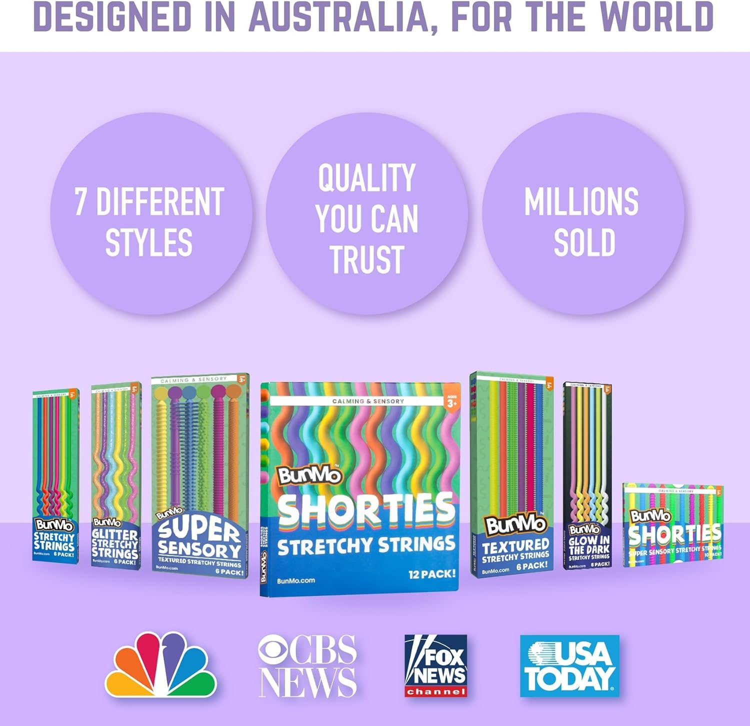 - Calming & Satisfying - Our Shorties are the ultimate sensory toys with a satisfying stretchy and squishy quality that excites and satisfies - providing a sense of calm to all.
