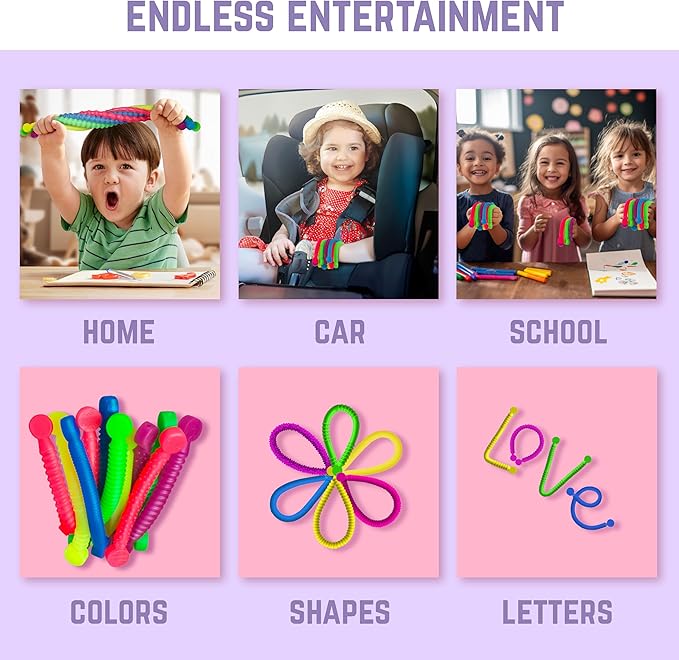 - Take Them Anywhere - These monkey noodles are beloved by students of all ages and a great addition to the classroom. Their soft, squishy nature makes them the perfect quiet toy for silent fun in class, the car + more.