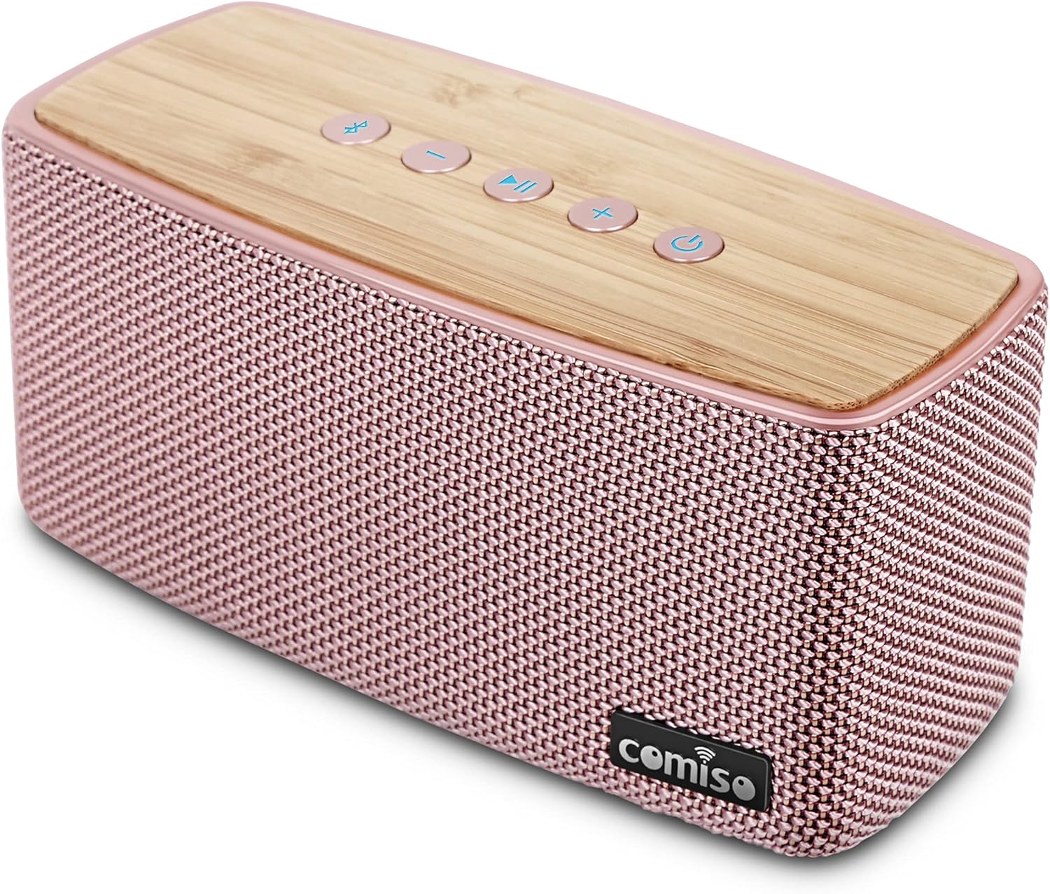 comiso Bluetooth Speakers, 20W Loud Wood Home Audio Outdoor Portable Wireless Speaker, Subwoofer Tweeters for Super Bass Stereo Sound Bluetooth 5.0 Handsfree 24H Playtime (Pink)