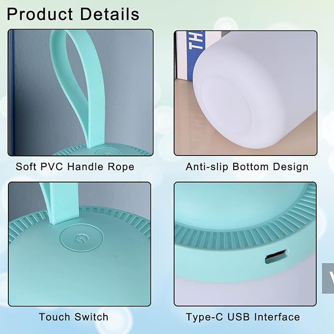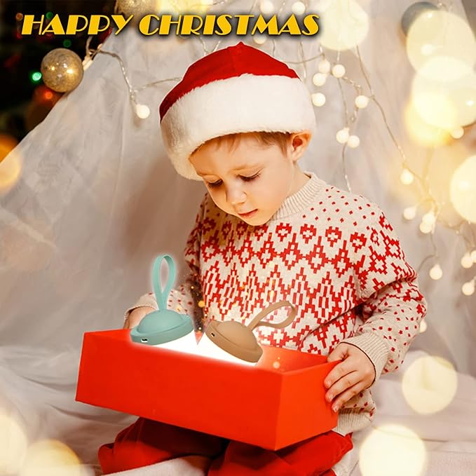 - 🔥HUMANIZATION AND CUTE DESIGN:Handle,compact, lightweight, wireless and cute, we stand well in user's angle design the product,the rechargeable kids lantern prevents you and your kids from tripping on cords. The soft PVC handle makes it easy to carry around and comfortable.The bottom is anti-slip and we add two rabbit ears to make the nursery night lights looks lovely.
