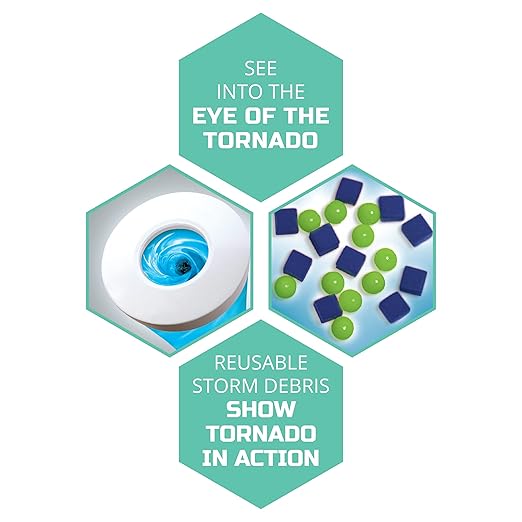 - WITH STORM DEBRIS TO TRACK THE DESTRUCTION: Use the included reusable storm debris to visualize the power and force generated by the tornado. This educational toy is suitable for boys and girls over the age of 6