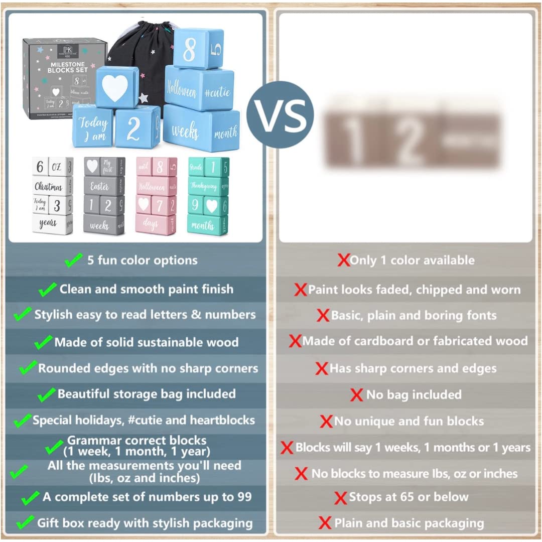 - Better Grammar Equals Better Photos: Instead of saying your newborn is 1 months, 1 years or 1 weeks, Parkway Home Wooden Milestone Blocks feature the singular – week, month and year! So now when you take those super cute pics, the focus is always on your wiggly bundle of joy and not poor grammar!