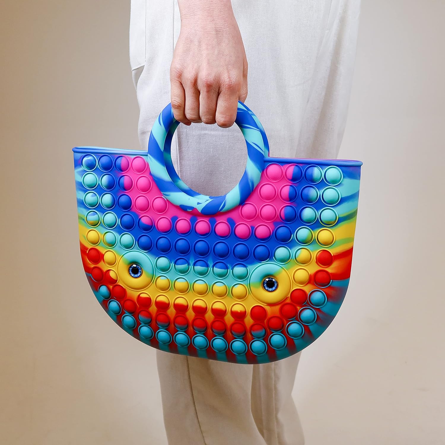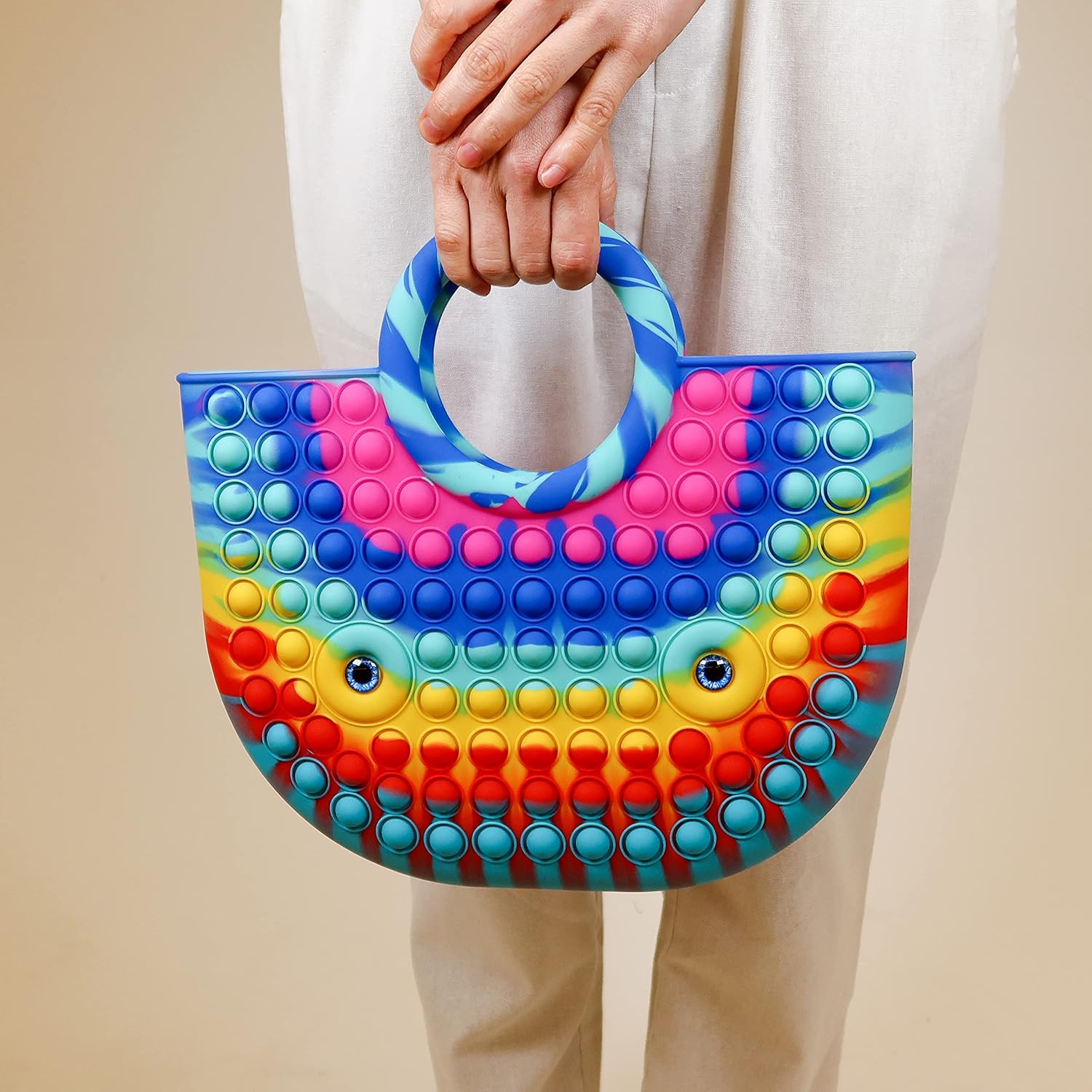 BABANA Fidget Purse for Girls - Bubble Push Pop Bag with Crazy Eyes, Silicone Fidget Handbag Toy for Kids | Birthday, Easter