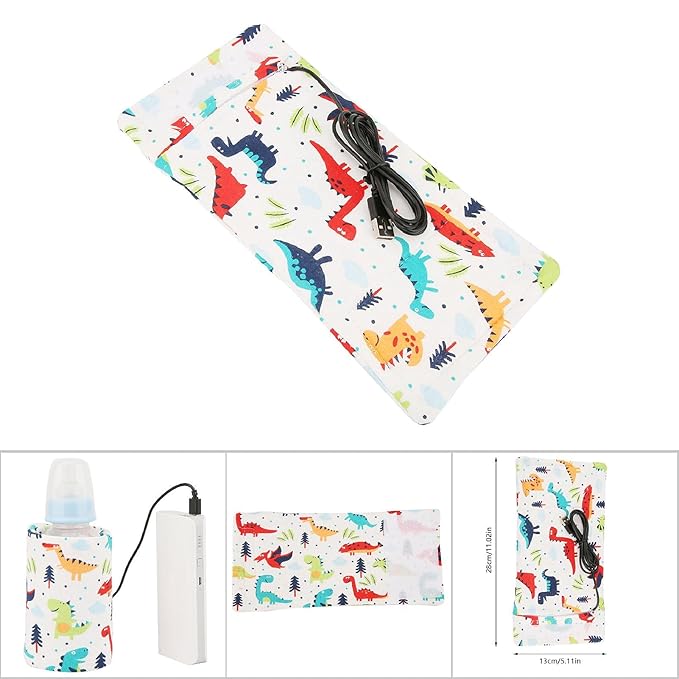USB Baby Feeding Bottle Warmer Portable Cartoon Milk Bottle Travel Heater Portable Milk Bottle Heating Warmer Compatible with Many Kinds of 5V 2A USB Devices(Dinosaur, 12)