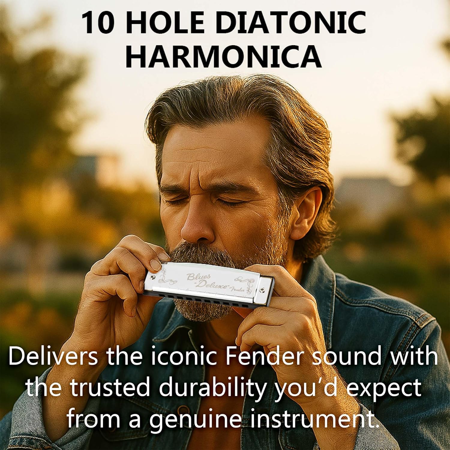 Fender Blues Deluxe Harmonica - Key of C Bundle with Carrying Case, Austin Bazaar Online Manual, and Polishing Cloth