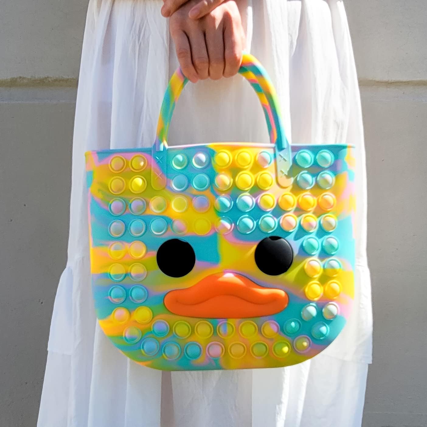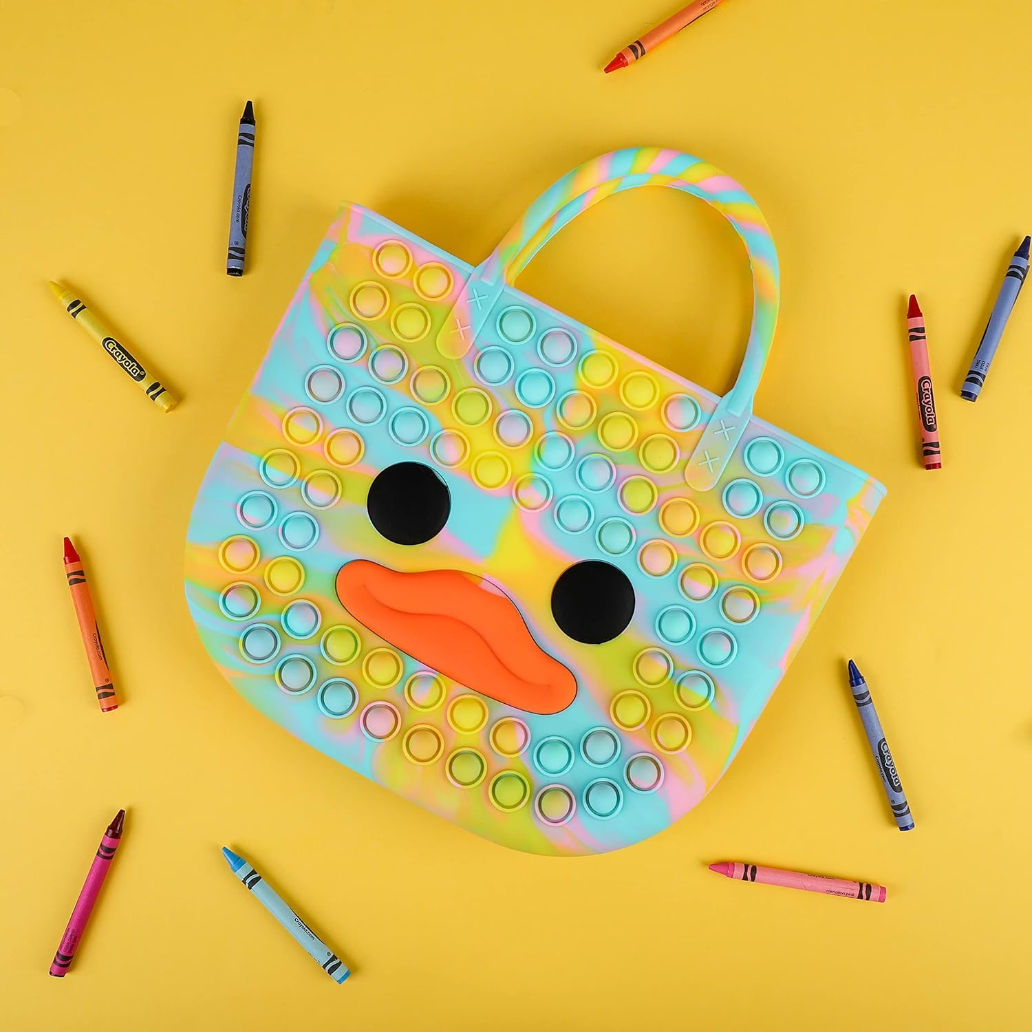 - Duck Purse - We love these duck bags. They quack us up! This fidget bag has a duck face and big pops on both sides. It's an ideal fidget toy for gifting, sensory play, and stress relief that can be used around town or at school as a purse.