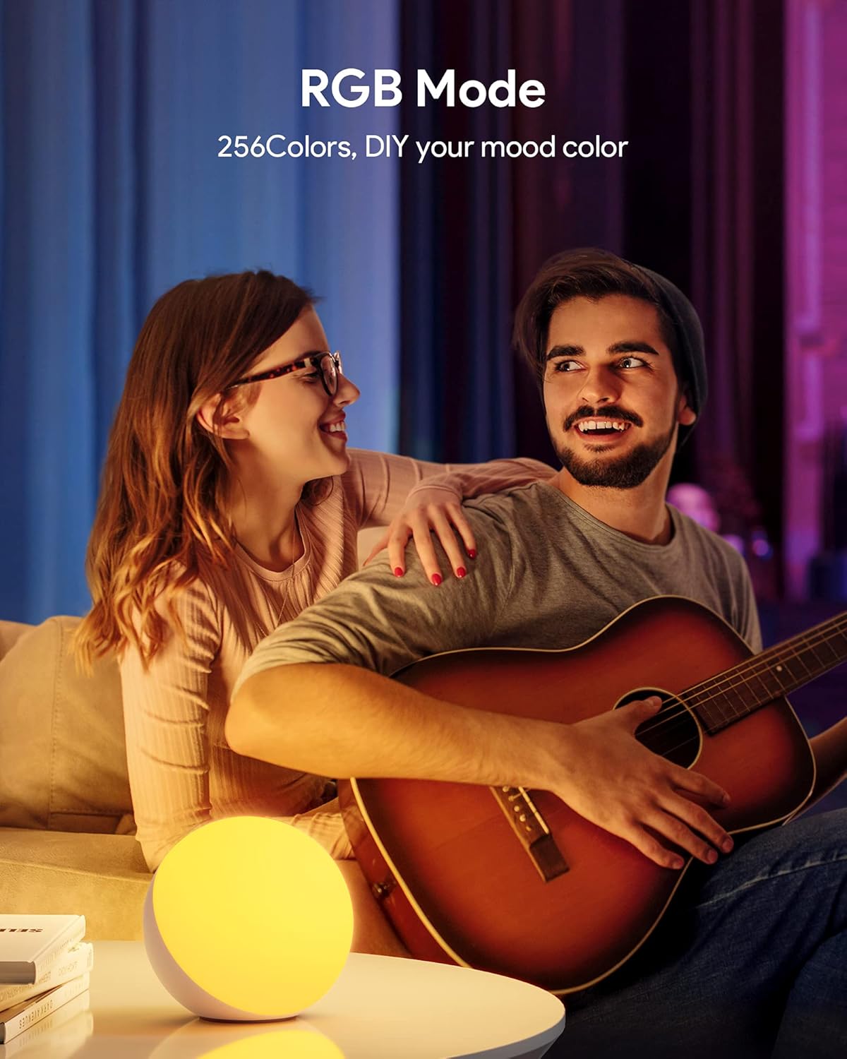 - 【5%-100% Dimmable Globe Lamp】Children are born with a natural affinity for spherical objects that's what our lamp T16 are inspired by. This lamp not only can create atmosphere or provide bright, practical lighting, but also illuminate a room with soothing warm white light or a vibrant color, brightness can be adjusted from 5%-100% by long pressing.【Note】This table lamp does NOT compatible with Alexa or google home, only touch control, children also can use without cell phones