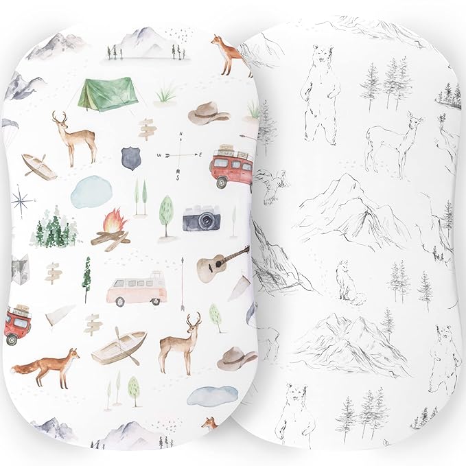 Pobibaby - 2 Pack Premium Bassinet Sheets for Standard Bassinets - Ultra-Soft Cotton Blend, Stylish Woodland Pattern, Safe and Snug for Baby (Explore)