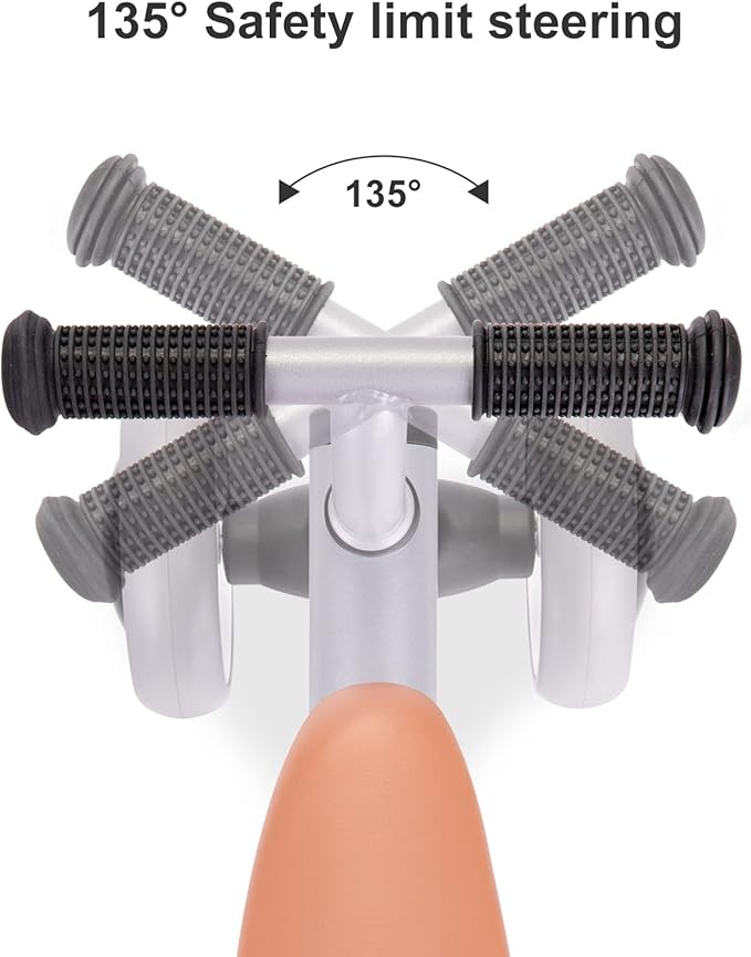 - 135° SAFTY STEERING: Handlebar rotation is limited to 135° to avoid side falling caused by excessive turning amplitude. The special front wheel design allows the bike body to sway slightly from side to side when turning.