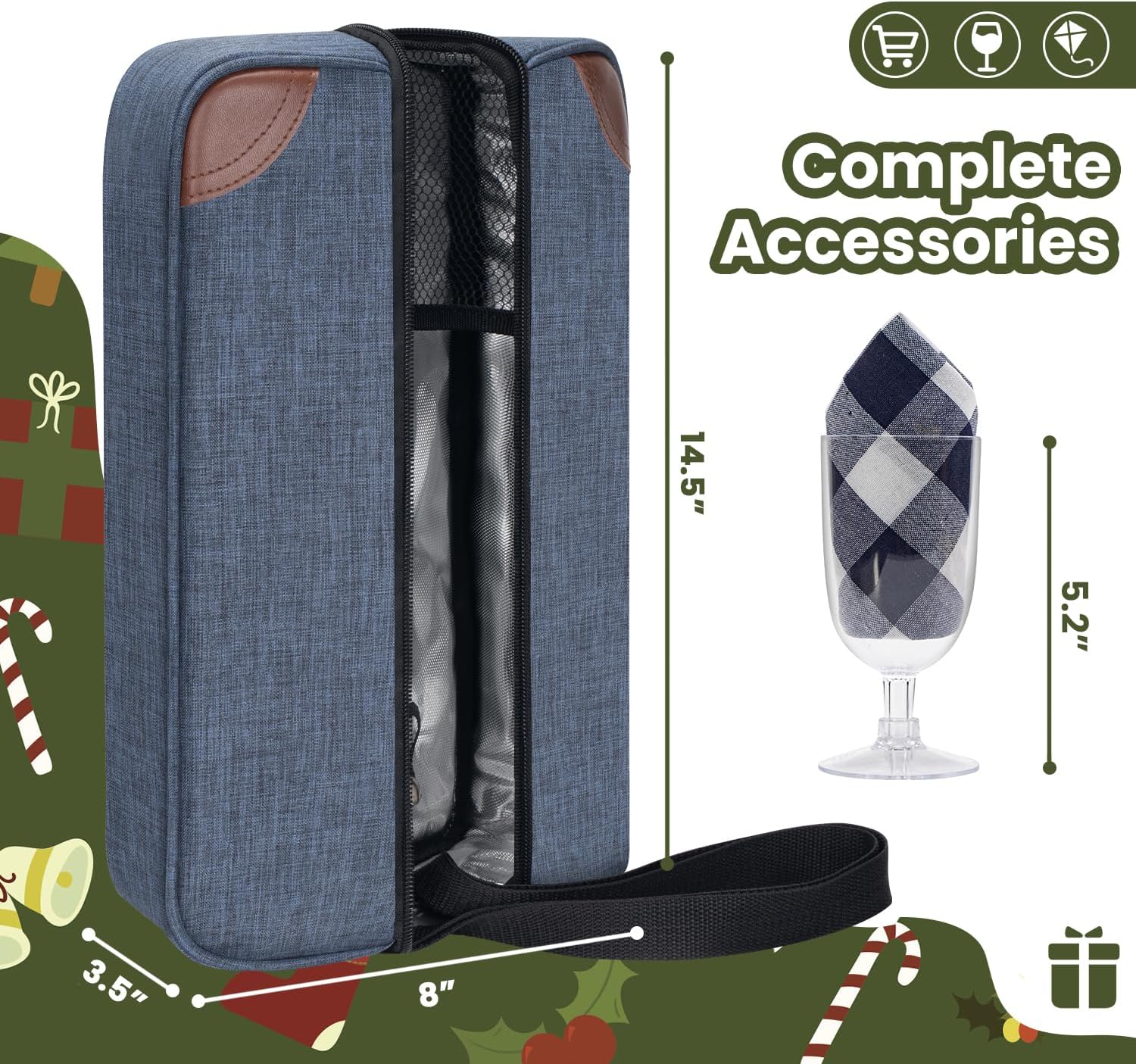 ALLCAMP Wine Bag - Insulated Cooler Bag with Wine Glasses, Bottle Opener & Wine Accessories for Wine Lovers - Portable Wine Gift Bag for Travel, Picnics, and Gift Ideas(Blue)