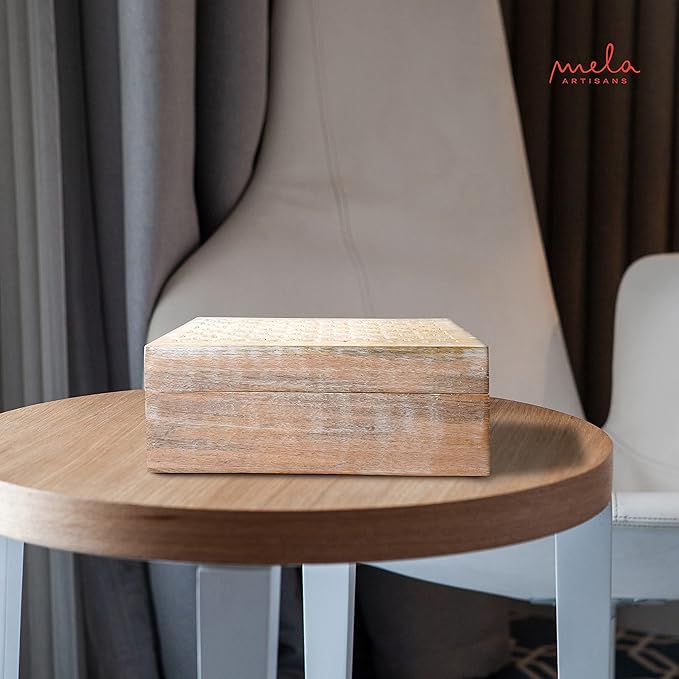 Mela Artisans Wooden Keepsake Box | Whitewash Mango Wood Memory & Photo Storage Box with Hinged Lid | Decorative Storage Box | Extra Large | 10.5x7.5x4 Inch