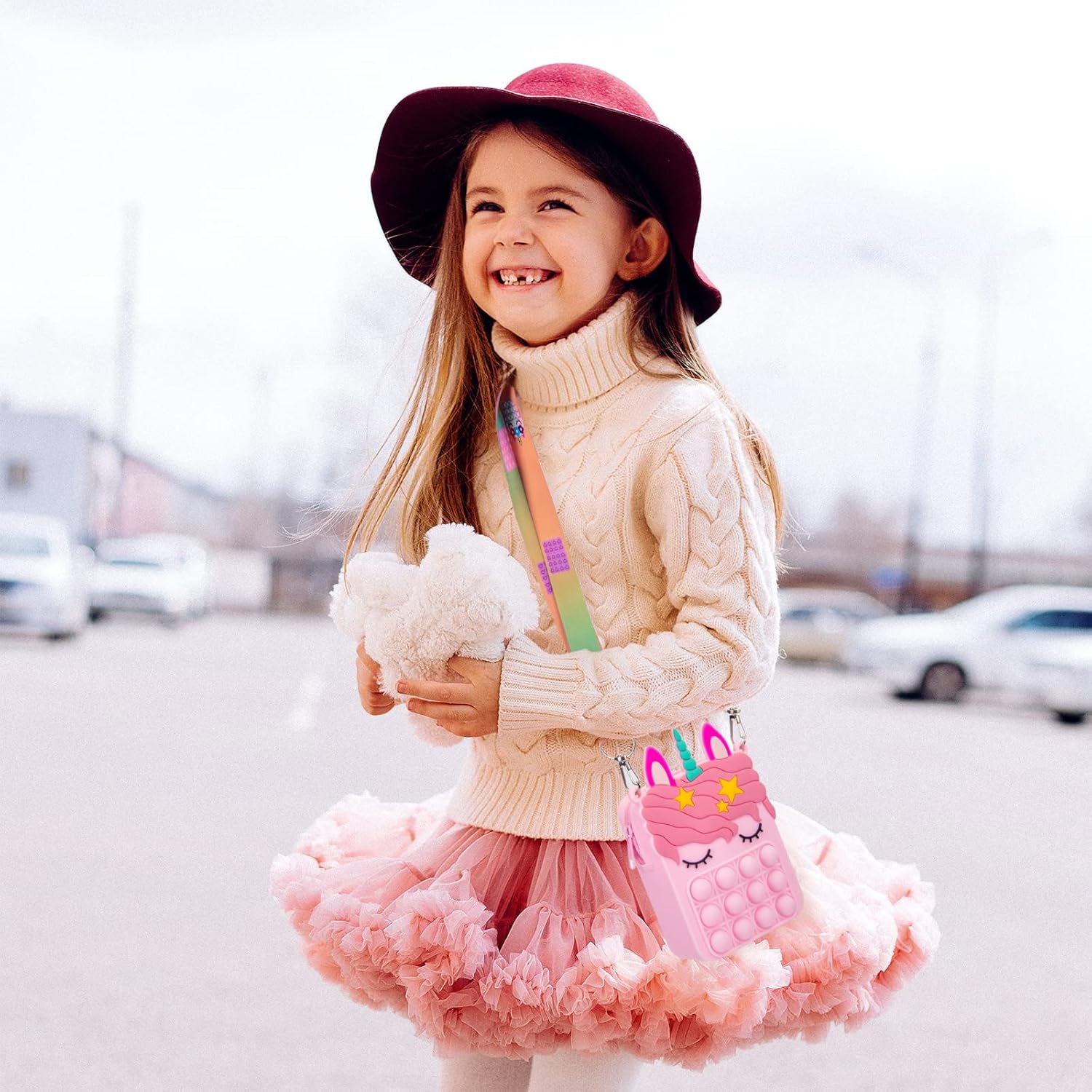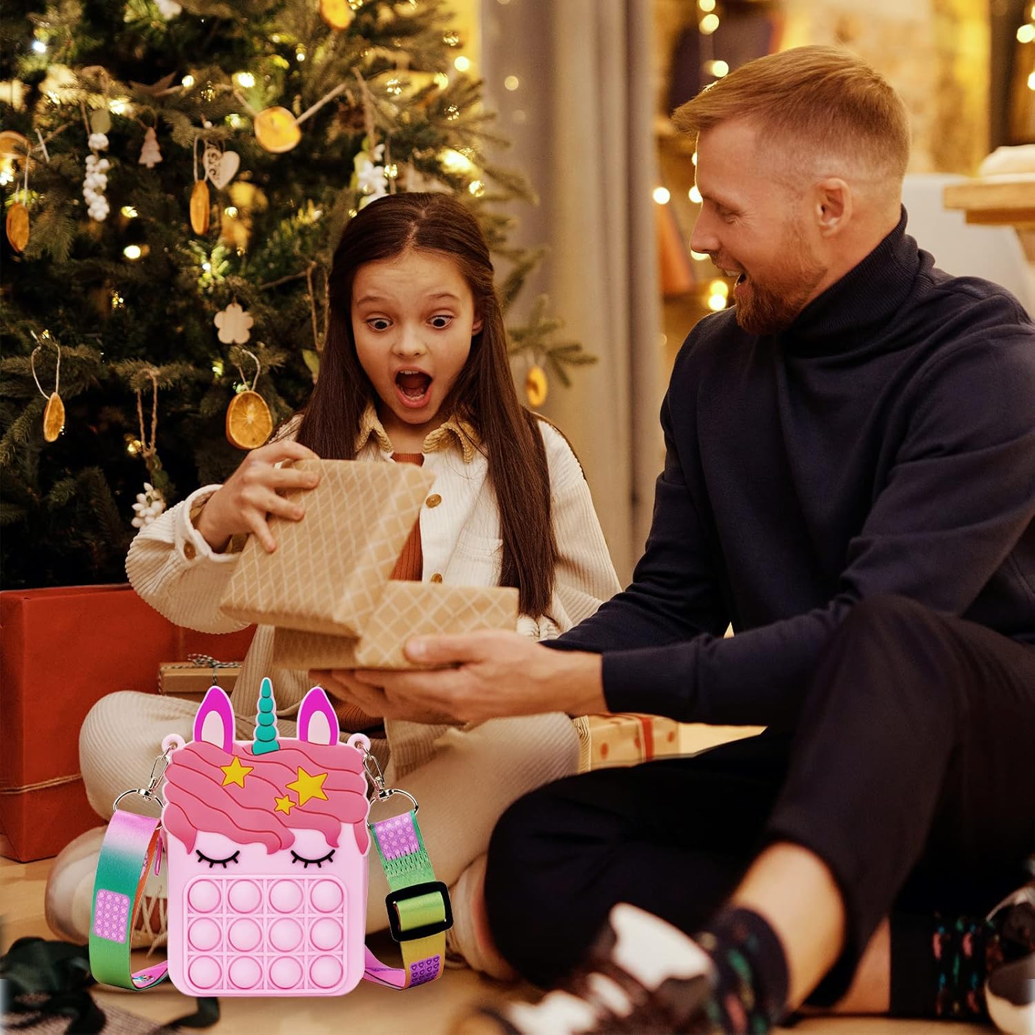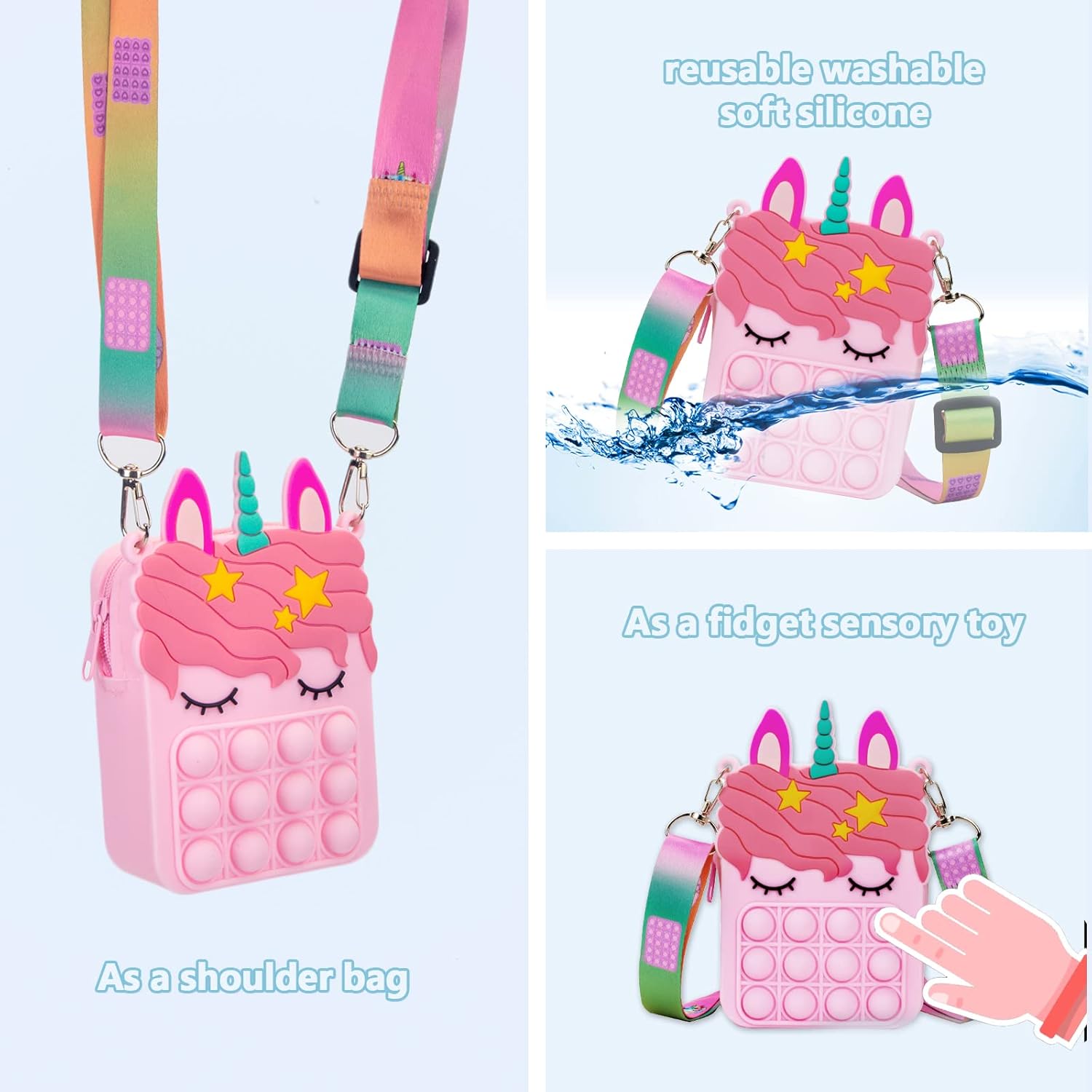 Civan Pink Unicorn Pop Purse for Girls, Beach Mini Pop Fidget Toy for Girls, Push Pop Bubble Fidget Sensory Toy, Stress Release Pop Coin Purse, Christmas Stocking Birthday Party Favors Unicorn Gifts