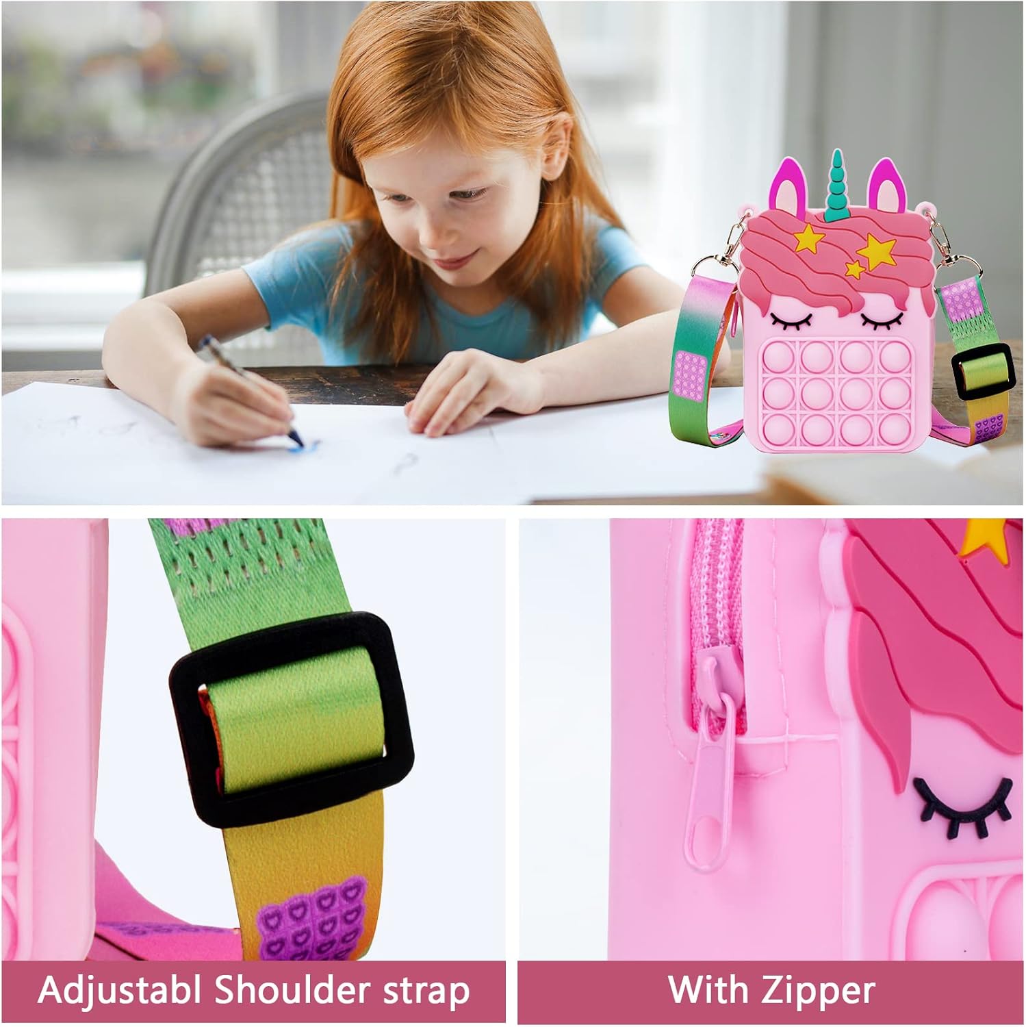 - 【Unique Pop Fidget Bag Toys 】You will get THREE SURPRISES: a push bubble fidget toy, a purse wallet and a shoulder bag (3 in 1). Pressing the bubbles on the bag will make "POP" sound which is attractive. It also can be used as a shoulder, underarm and cross body bag with the zipper. The push bubble shoulder bag is the most popular designed for stylish girls and kids.