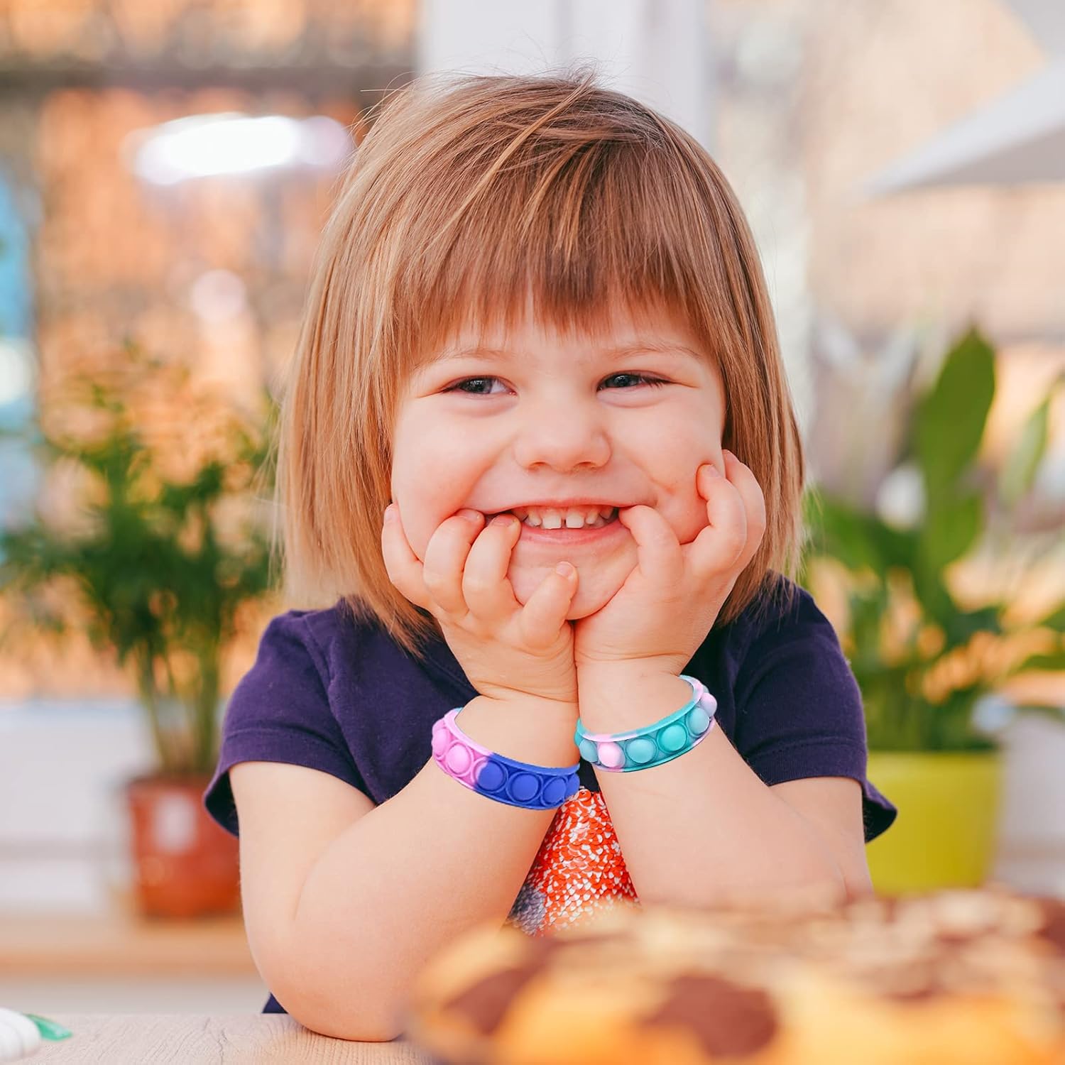 - [Unique Pop Fidget Bracelet Design] Our Pop Fidget bubble bracelet toy has a unique design, rich in colors, soft material, comfortable to wear, adjustable in length, and can be adjusted according to the actual situation. Most children and adults can use it.