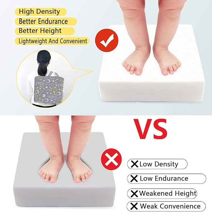 - 🟢Carry it with you - The heightened table seat size is 13.4 x 13.4 x 3.5 inches and weighs 0.9 lb. It is light and practical. It can be used not only for dining, painting, and playing at home but also as a portable high chair for dining out, at home, and in Other public places, Suitable for children to spend dinner with their family at the table.
