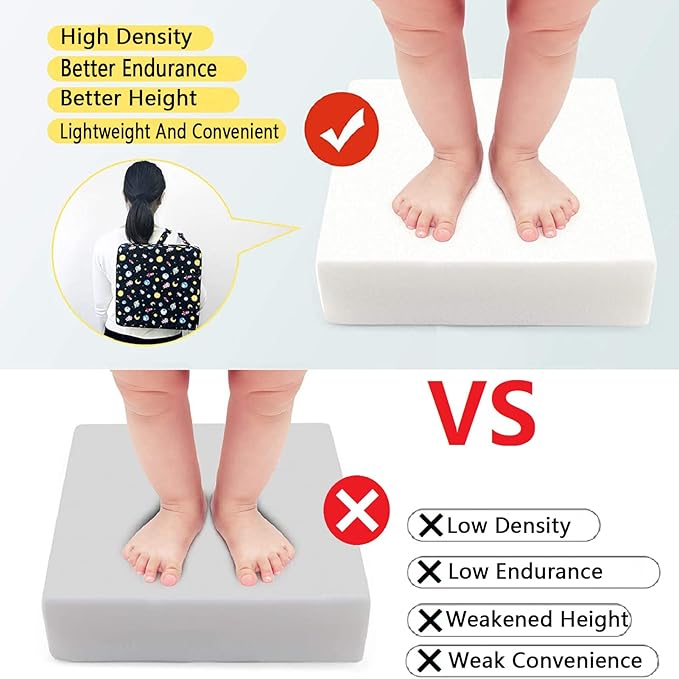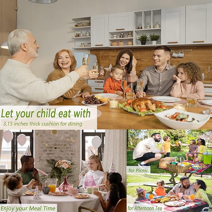 - 🟢Carry it with you - The heightened table seat size is 13.4 x 13.4 x 3.5 inches and weighs 0.9 lb. It is light and practical. It can be used not only for dining, painting, and playing at home but also as a portable high chair for dining out, at home, and in Other public places, Suitable for children to spend dinner with their family at the table.