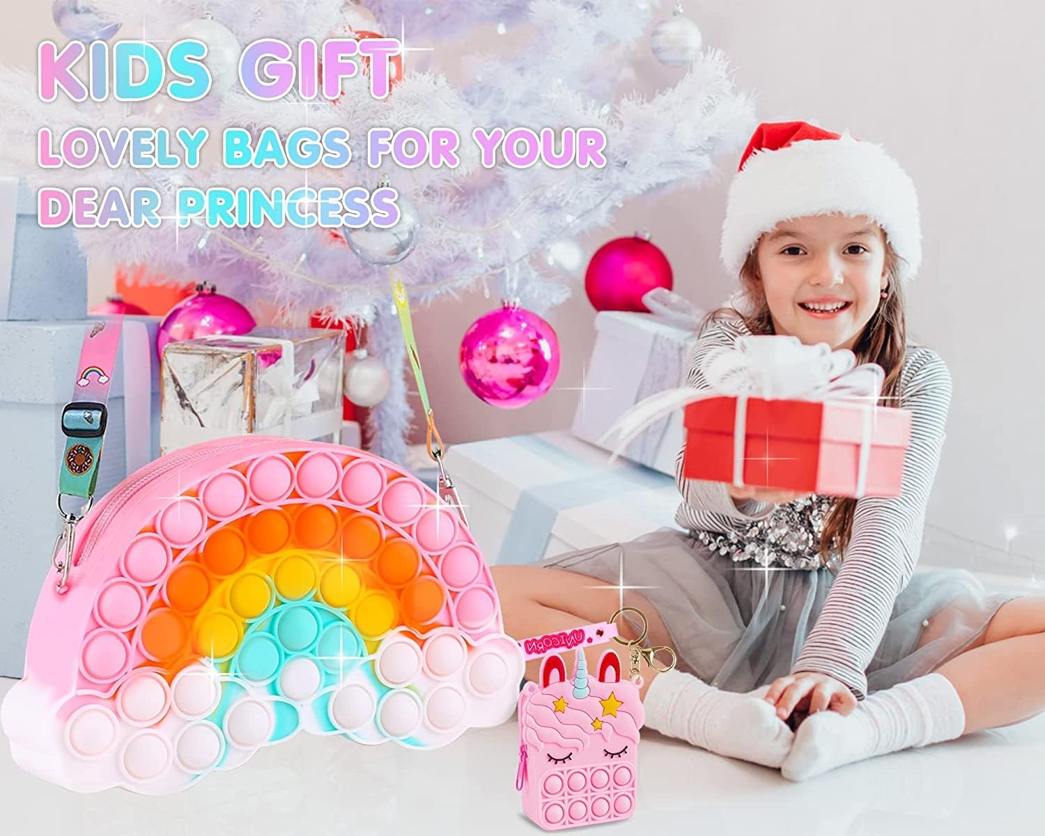 Aucma 2 Pack Purse for Girls Toys Gift Rainbow Cloud Pink Unicorn Crossbody Handbag Bag Kid 3 4 5 6 7 8 9 10 11 12 Years Old Birthday Valentines Christmas Stocking Easter Basket Stuffers Stuff