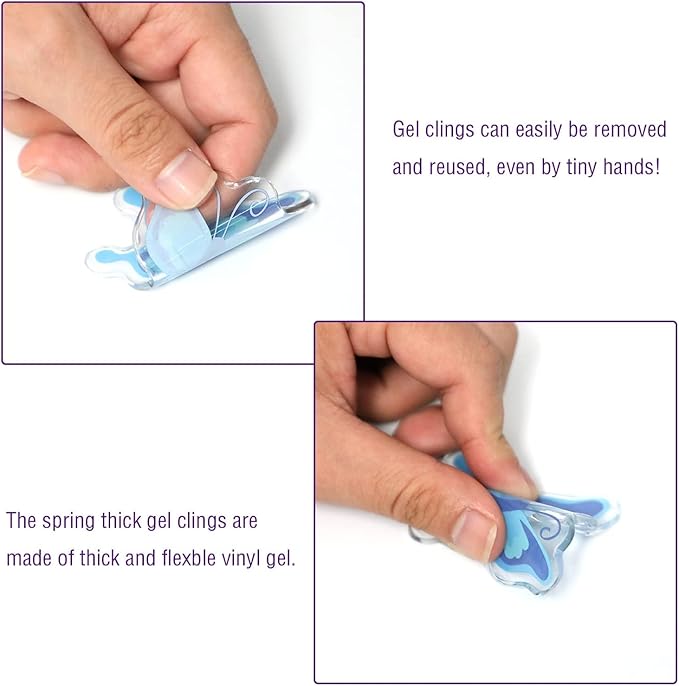 - Note: The spring thick gel clings are not edible.These thick gel window clings are suitable for children 5 years old and above to play, there is a risk of suffocation, need to be accompanied by an adult when playing.