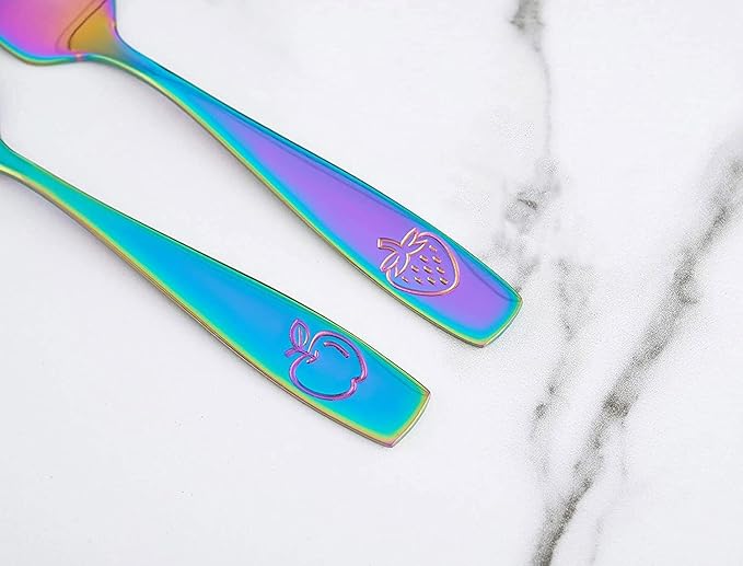 - Fun Design - Introduce your kids to the fun of fruits with these cutlery sets that feature apple and strawberry shapes. The spoons and forks have engravings of these fruits that make them look realistic and attractive. These kids fork spoon set encourages children to eat and helps them develop their self-feeding skills more easily. It's a great way to make your table livelier and more enjoyable!