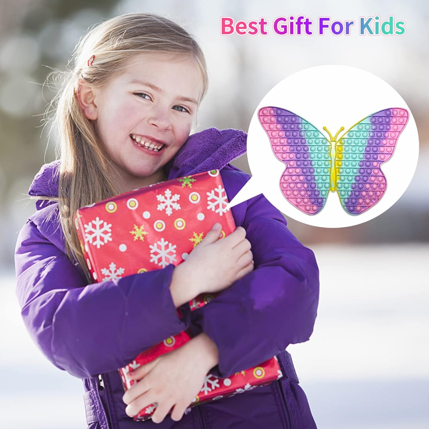 Jumbo Butterfly Pop for Teens Kids Girls, It is 15.75 Inch 162 Bubbles Extra Large Pop Fidget Toys, Giant Butterfly Toy, Huge Big Jumbo Pop Fidget Toy Stress Reliever, Women Girl Gift Christmas