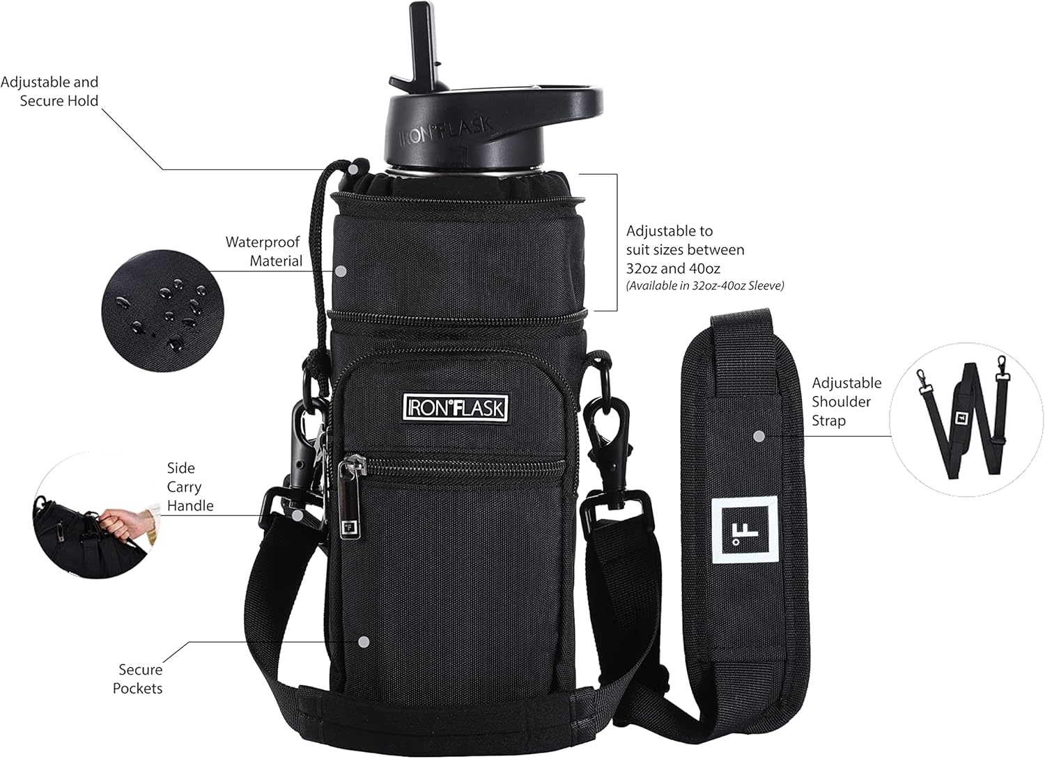 IRON °FLASK Carrier, Holder, Sleeve - Fits Insulated Stainless Steel Sports Water Bottle, Adjustable Shoulder Strap, Holder Bag Case Pouch Cover