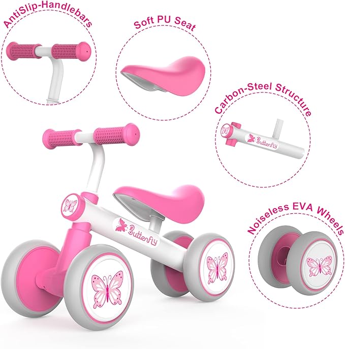 Baby Balance Bike 1 Year Old, Toddler Bike for One Year Old Girl Birthday Gift, 1-3 Years Toddler First Bike with No Pedal & Silence Wheels, Ride on Toy Gifts for 1 Year Old Girl