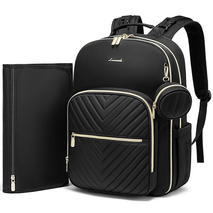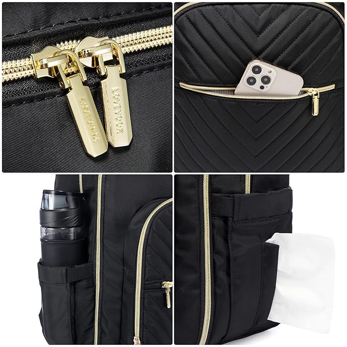 LOVEVOOK Diaper Bag Backpack, Quilted Baby Bag with Changing Pad & Pacifier Holder, Waterproof Travel Diaper Bags for Baby Boys Girls, Stylish and Large Capacity, Black