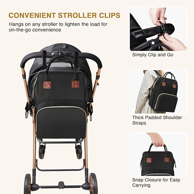 - Lightweight Mom Diaper Bag - This stylish nappy changing bag for baby boys and baby girls weighs only 1.3lb and is very lightweight. With its easy-to-grip top handle and convenient stroller clip design, diaper backpack can be used as a tote bag or a stroller organizer, so moms can travel and shop with their babies without any burden, an ideal baby shower gift for parents and must-have newborn essentials for your baby registry