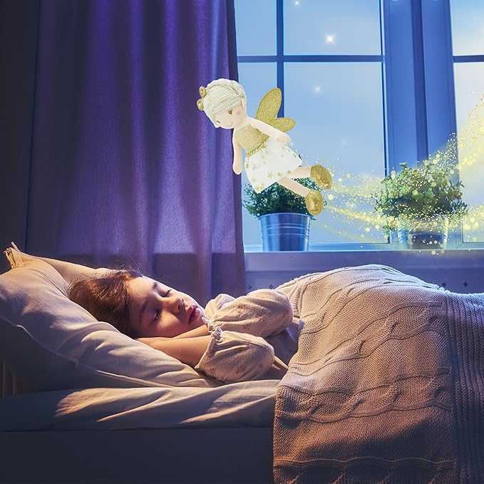 - ENCHANTED GARDEN FAIRY DOLL: Discover the magic of June Garden fairies, who bring good luck wherever they go! Within the Enchanted June Garden, home to magical beings, resides the lovely fairy Elida. She casts enchanting spells, filling children's lives with hope and love. Spirited and energetic, Elida adores spending time with little ones. Place her beside a pillow, and watch her wings flap and glow at night!