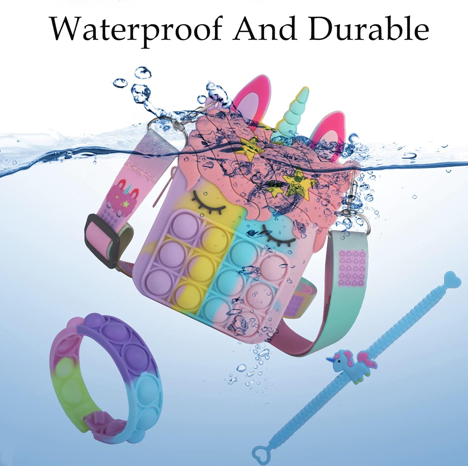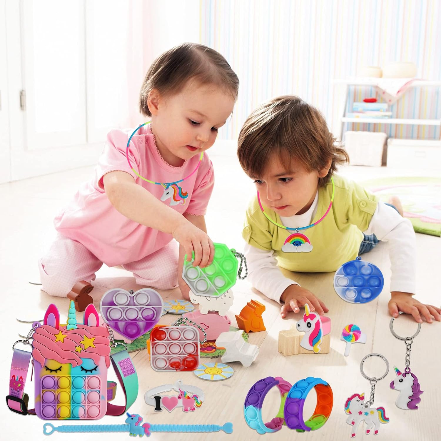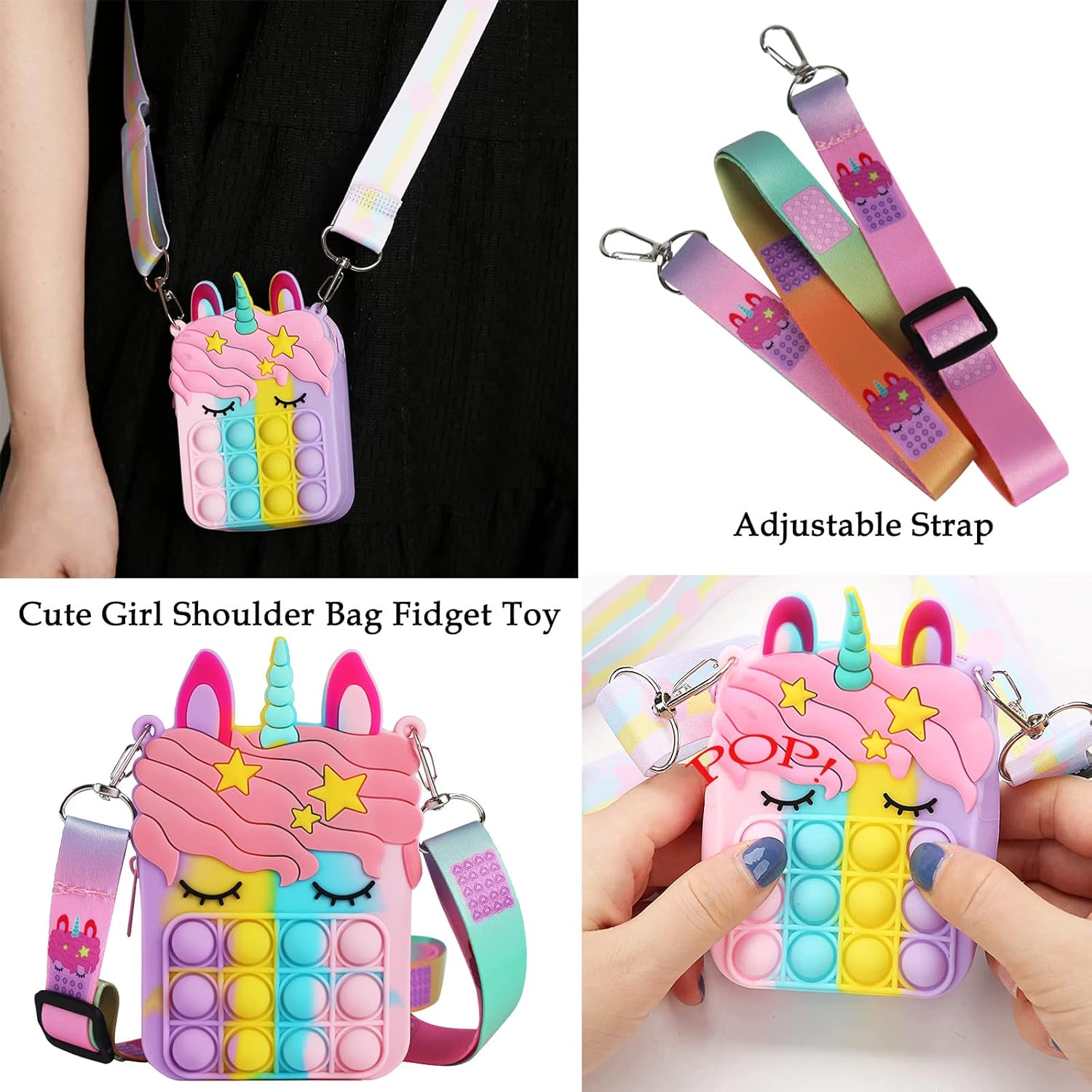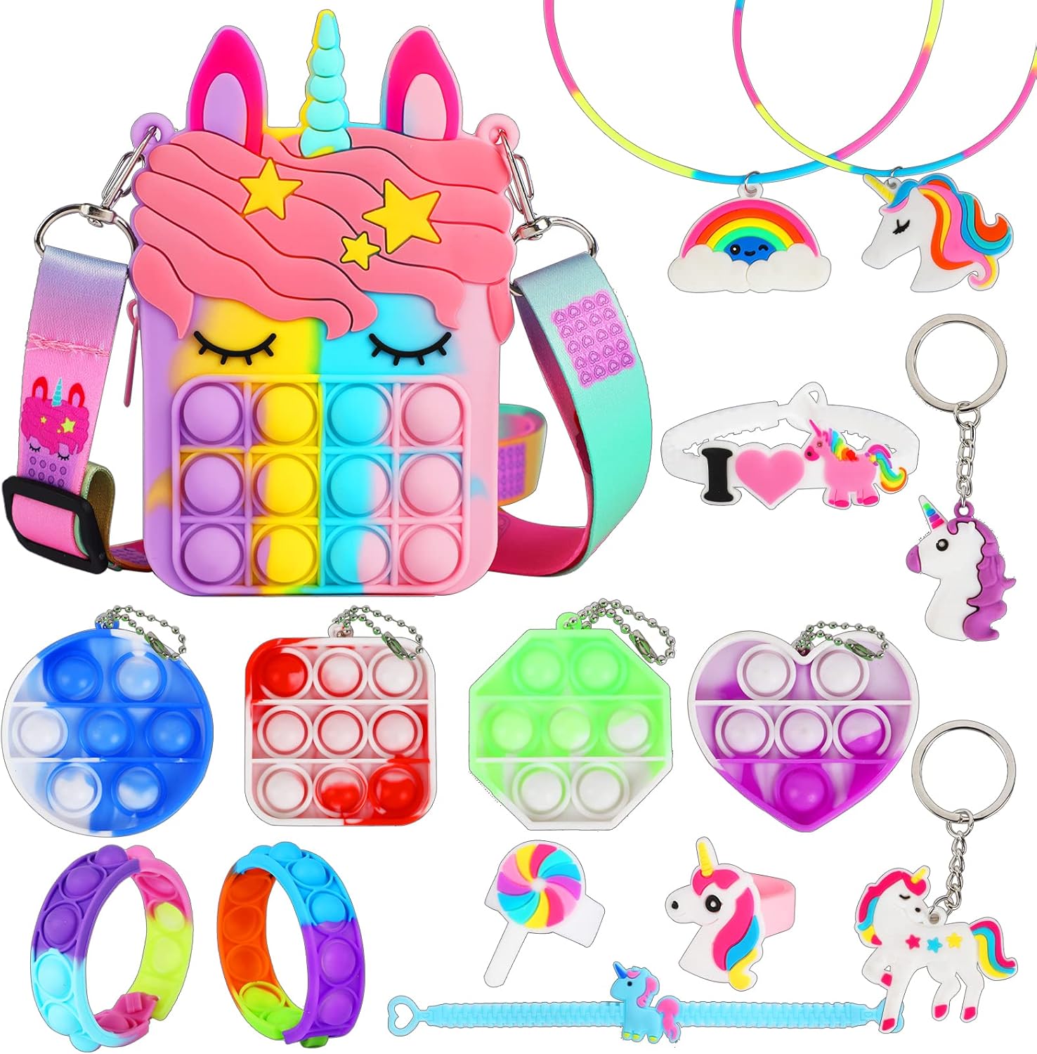 Fidget Purse, Pop Fidget Push It Bubble Popper Unicorn Bag with Bulk Fidget Bracelets Key Chain Stress Relief Toys for Girls Ages 3-12 Gift Easter Basket Stuffers Birthday Party Favor Xmas Stocking