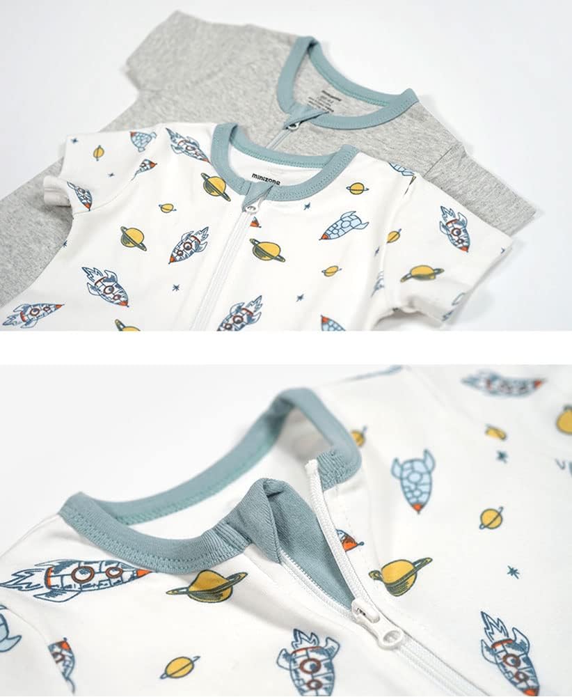 Teach Leanbh Baby Boys Girls 2 Pack 2 Way Zipper Footless Pajamas Cotton Short Sleeve Printing Romper Sleep and Play