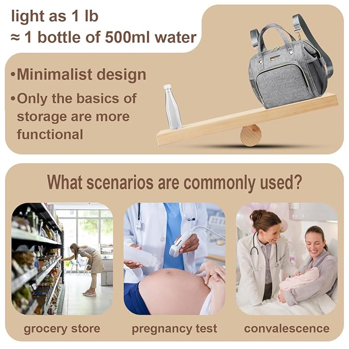 - Multi-Function Convertible Design – This versatile small diaper bag tote grows with your needs thanks to its adjustable shoulder strap. Use it as a shoulder bag, crossbody bag, mini backpack, stroller organizer, or even a handheld purse. Perfect for hospital visits, breast pump kits, daily errands, or nursery runs, it’s the ultimate "mom bag" that transitions seamlessly from morning coffee to evening playdates