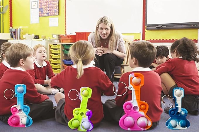 (Students Birthday Gifts and Party Favors) 30 Packs Guitar Bulk Mini Pop for Adult Kids,Cool Shape Sensory Small Bubble Fidget Classroom Supplies