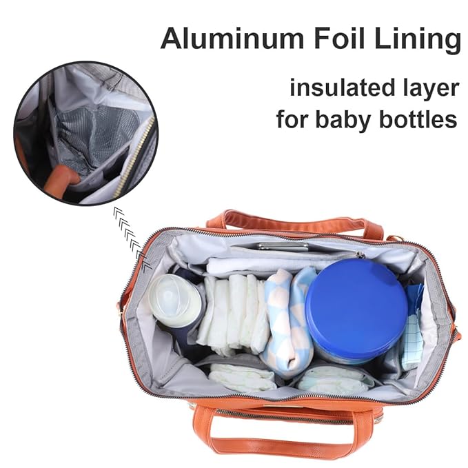 Diaper Bag Tote, with 12 Pocket Mom Bag, 16" Large Leather Baby Bags Convenient to Carry Diapers, Wet Wipes, and Bottles (Dark Brown)