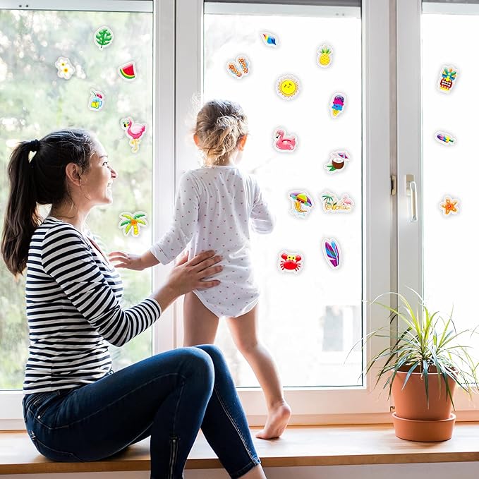 - You will get: 20 hawaiian window gel clings in 20 different summer beach patterns, and provide vivid designs for your home window decoration. Expand your children's imagination through these cute and beautiful Santa Claus window gel clings