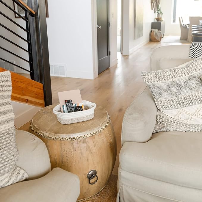 - DOUBLE REINFORCED & SCRATCH-FREE DESIGN: When you’re a full-time mom or dad, you need a storage solution that works just as hard as you do. With reinforced stitching on the handles and base, our woven storage basket set is ready to tackle some heavy-duty actions and will sustain the roughest toddler play. With our soft yet firm handwoven rope basket designs, you’ll never have to worry about scratches or marks being left on your coffee table, shelf, front door table, nightstand or any tabletop.