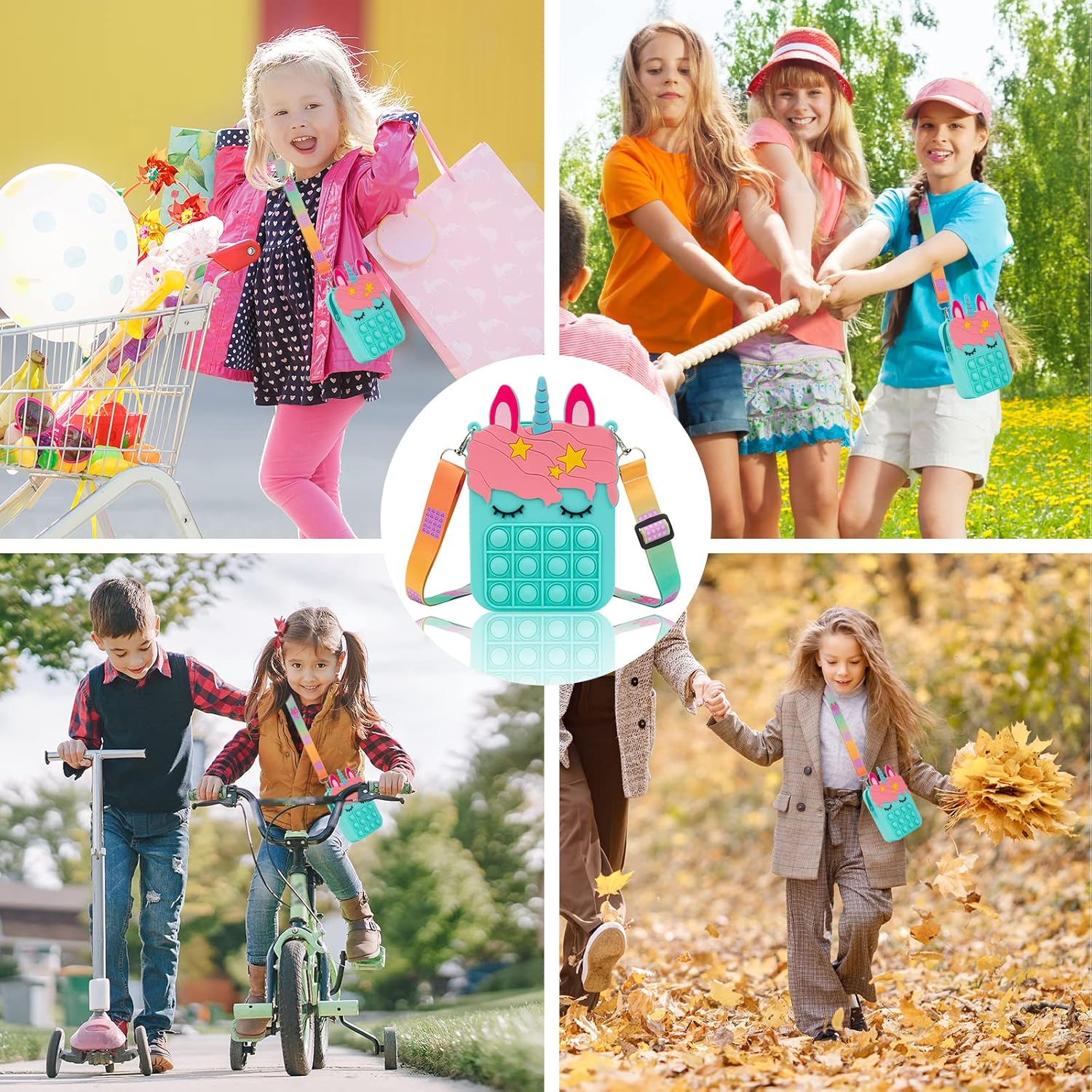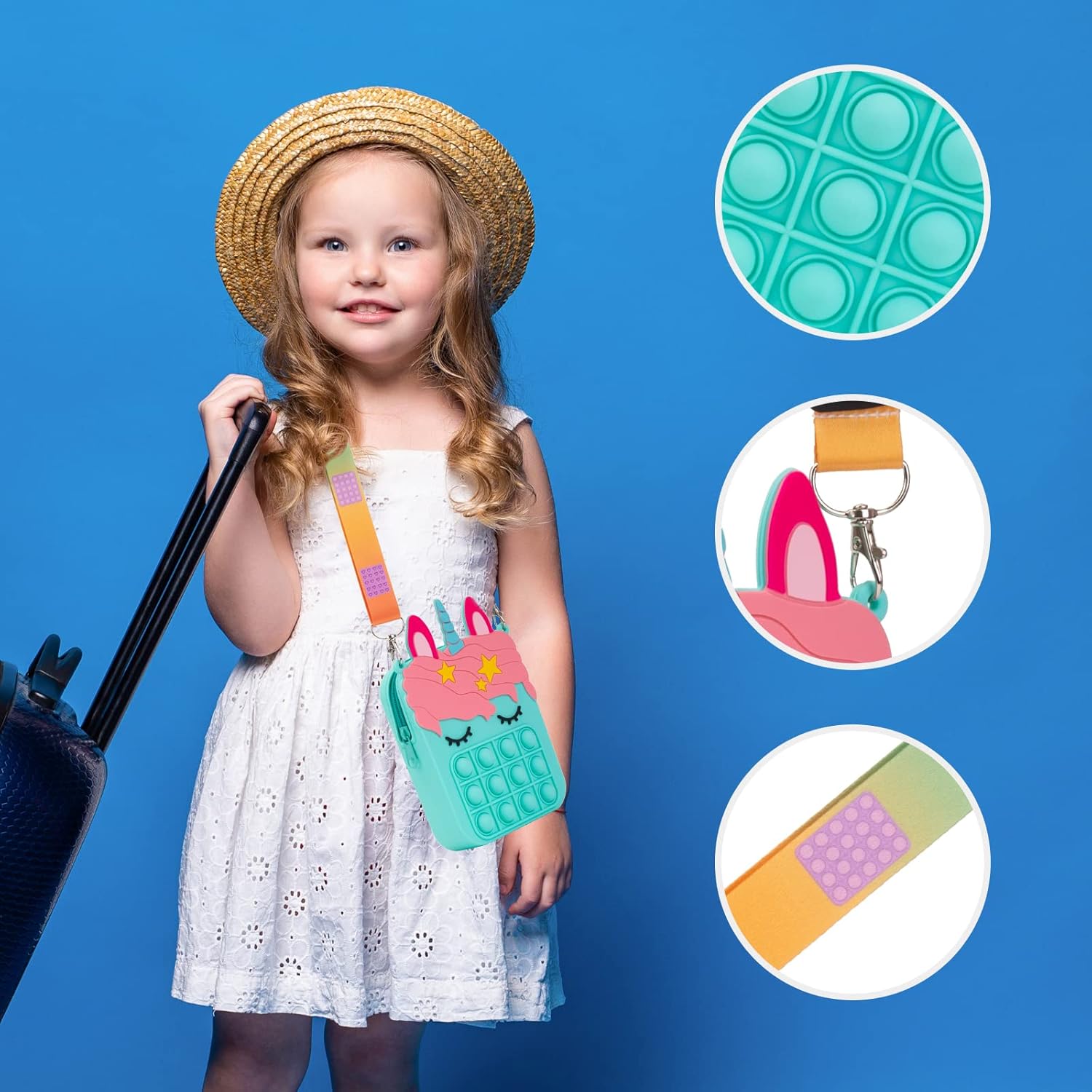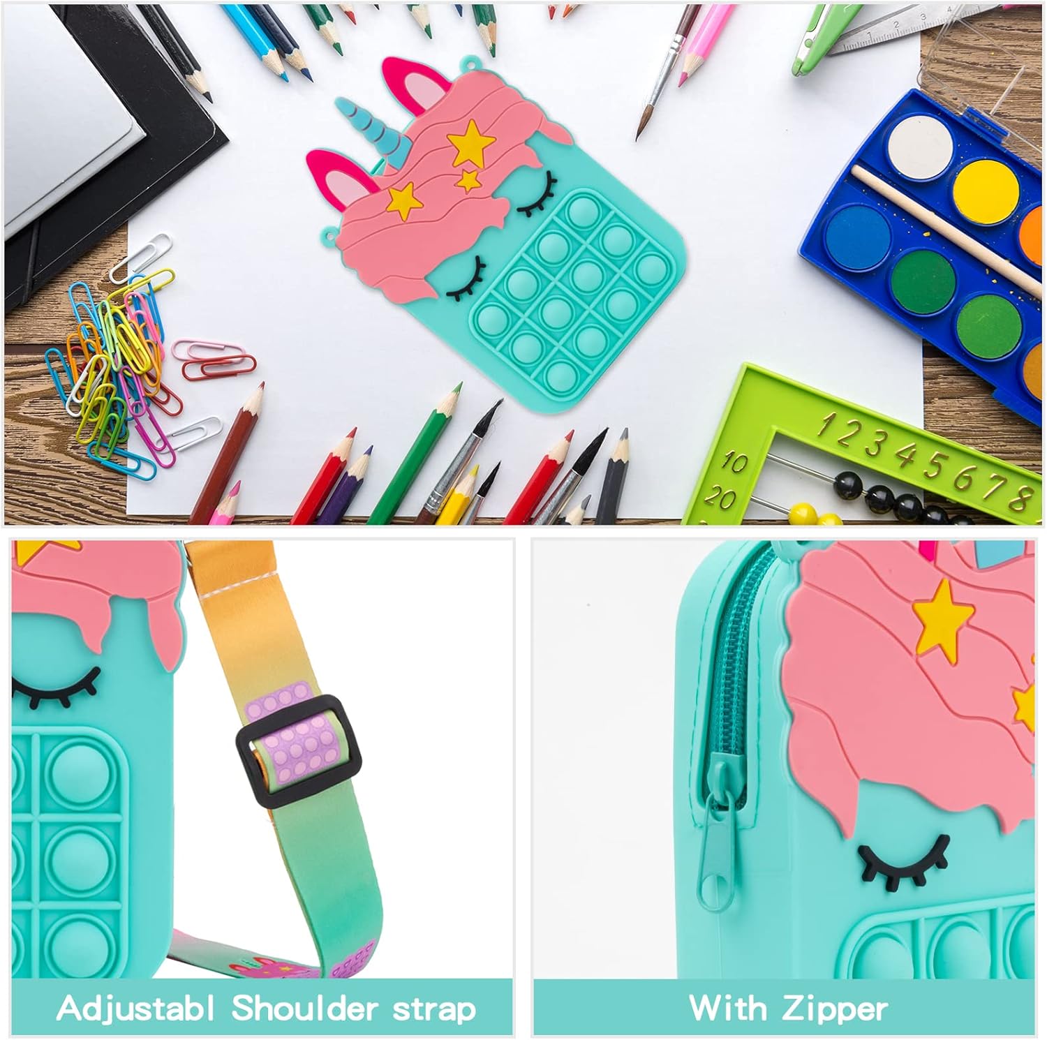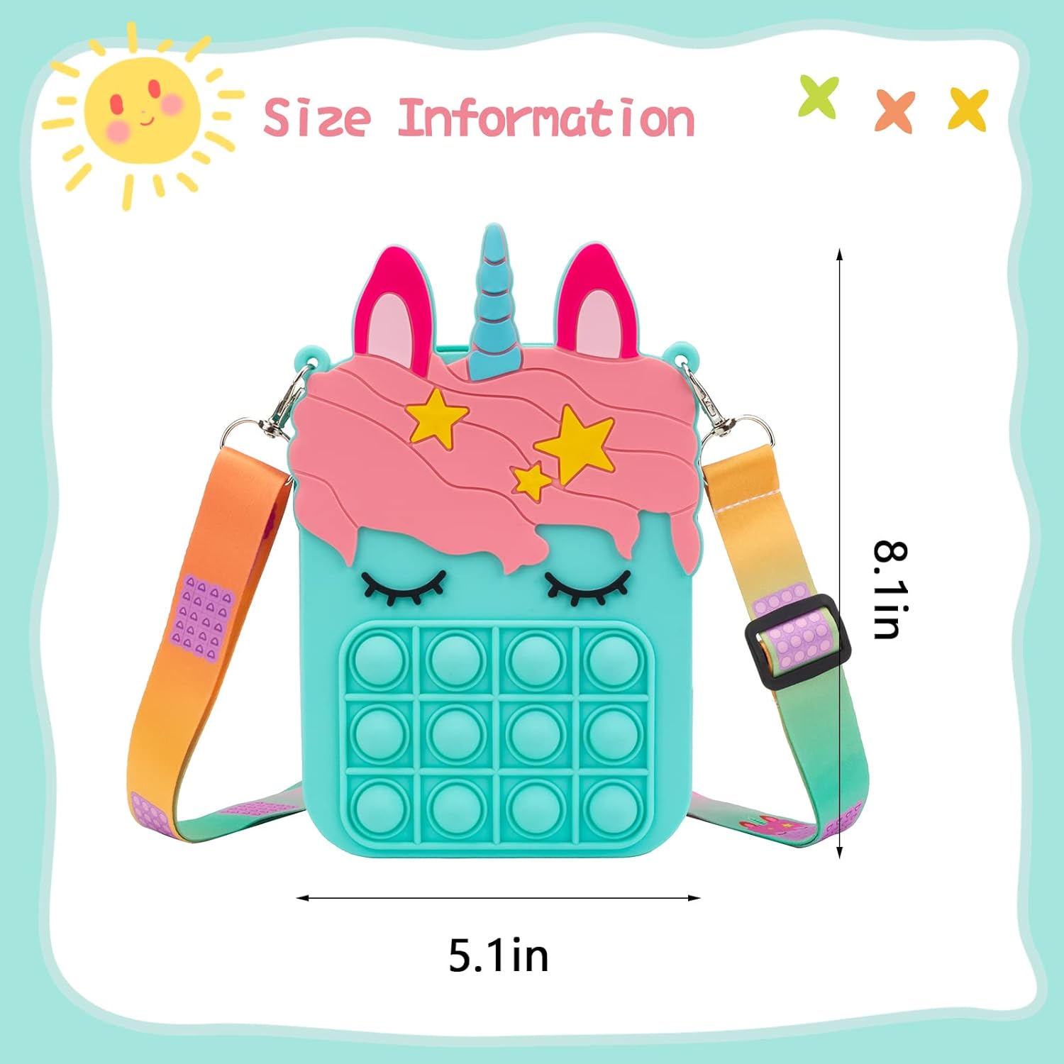 - 【Pop Bubble unicorn Bag for Girls】The lovely unicorn shape and bright colors will soon attract the girls' attention! This kitty pop bubble bag is a great gift for girls, friends, classmates, colleagues, etc. It can be both a bag and a toy. A wonderful birthday gift, party gift, Halloween gift, Christmas gift, help restore the mood, home essentials, games that the elderly, student, and adults can play