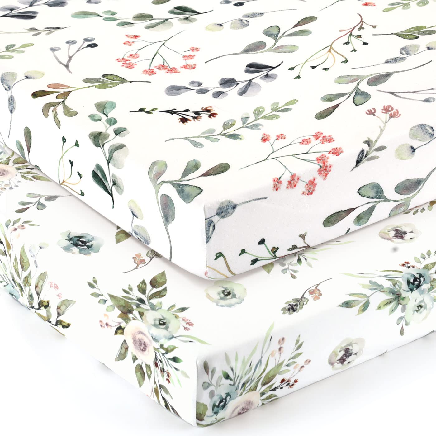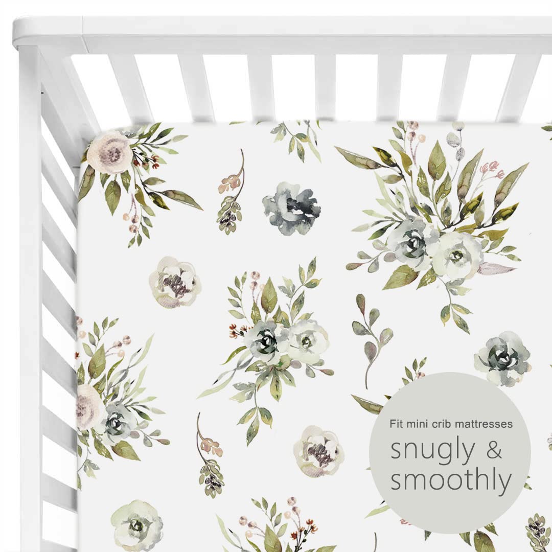 GRSSDER Stretchy Ultra Soft Jersey Knit Fitted Pack n Play Sheets Set 2 Pack, Portable Pack and Play/Mini Cribs Sheets for Girls,Stylish Watercolor Rose and Flora