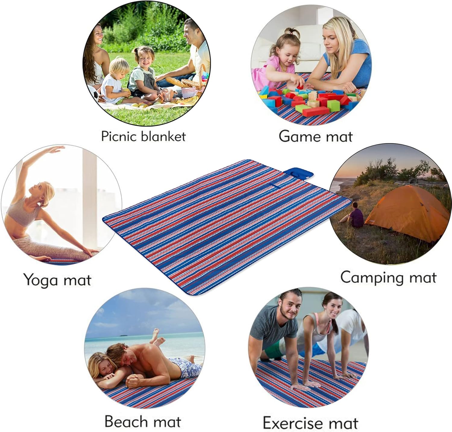 - MULTIPLE USE BLANKET : It is not just a large picnic mat, you can use it for beach blanket, camping blanket, RV blanket, baby play mat, yard blanket, waterproof blanket, emergency blanket or throw blanket. It is the perfect choice for the park, the beach, outdoor, fishing, sporting events, soccer games, concerts, hiking.
