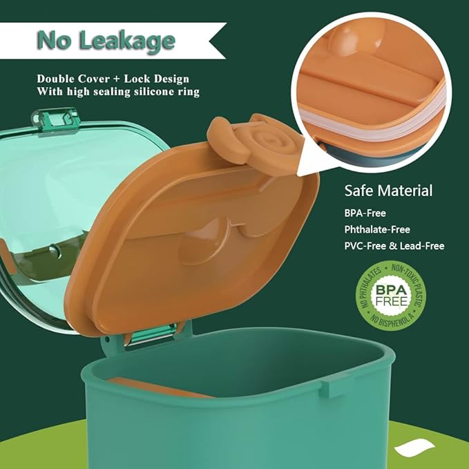 - ⭐Intimate design: With the spaced layer for spoon, spoons and formula can be stored in different places to maintain hygiene. Infant formula dispenser with separate design helps you scoop each spoon of milk powder accurately to avoid wasting.