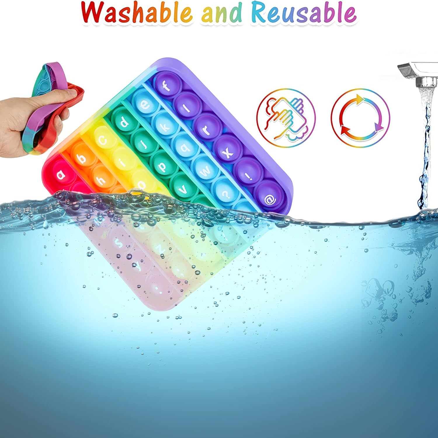 - 【PREMIUM MATERIAL】--The uppercase alphabet pop toy is made of high quality silicone, soft, lightweight, foldable, waterproof, odorless, smooth, safe for babies and toddlers to play.