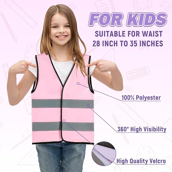 - Great Working Vest Design for Play: This kid construction vest is specifically made for kids to pretend and use comfortably, which features 2 reflective strips. The vest is suitable for a waist of 28 inches to 35 inches. The pink color design is a color that all girls love.
