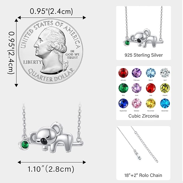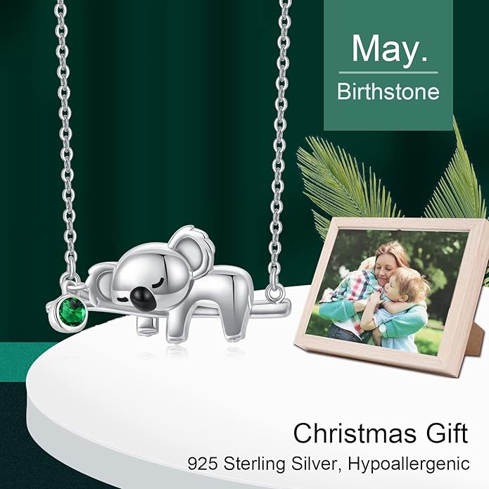 JUSTKIDSTOY Koala Necklace Sterling Silver Cute Animal Koala Bear Birthstone Necklace Jewelry Christmas Birthday Gifts for Women Girls