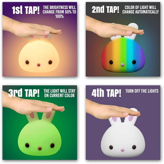 - ✅ BEST BIRTHDAY TEEN GIFT FOR BOYS AND GIRLS - Perfect Birthday and Christmas gifts for kids, baby, toddlers, boys, girls, and bunny lovers. Kids love this cute bunny lamp crazily, and adults love it as well. You can squeeze the cute night light with safety and color-changing mode makes you feel less anxiety too. One charge of our night light can stay up to 10 hours with the light on. They are also perfect for short time use like a child's bedtime or playroom area.