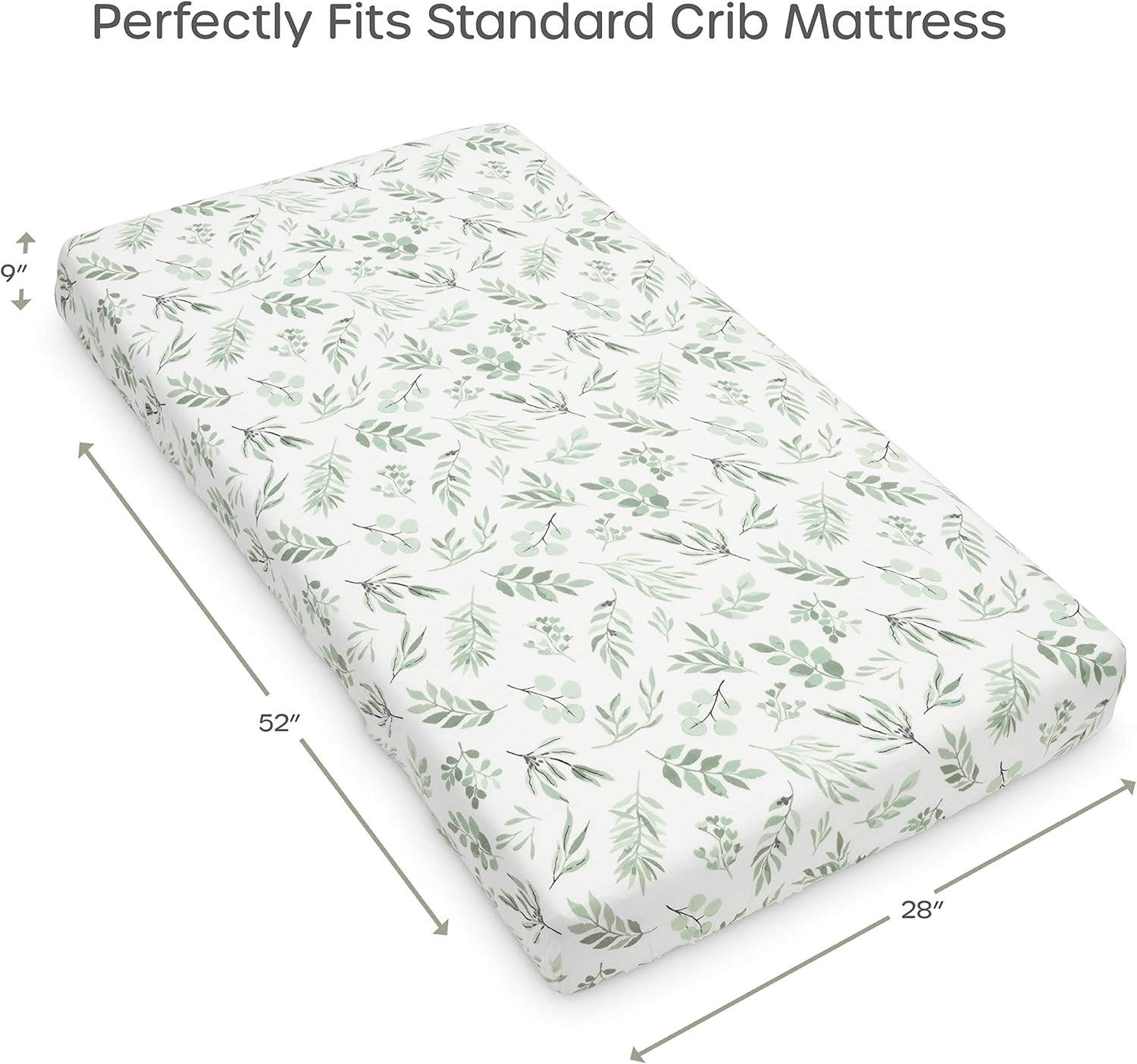 - 🌿 Stylish Boho Sheet - The eucalyptus leaves design is perfect for any nursery style, adding a touch of boho inspired charm. It’s a stylish gift for both boys and girls. Fits standard crib (52 in x 28 in x 9 in). Finally a fitted muslin crib sheet that’s cute and heavenly soft!