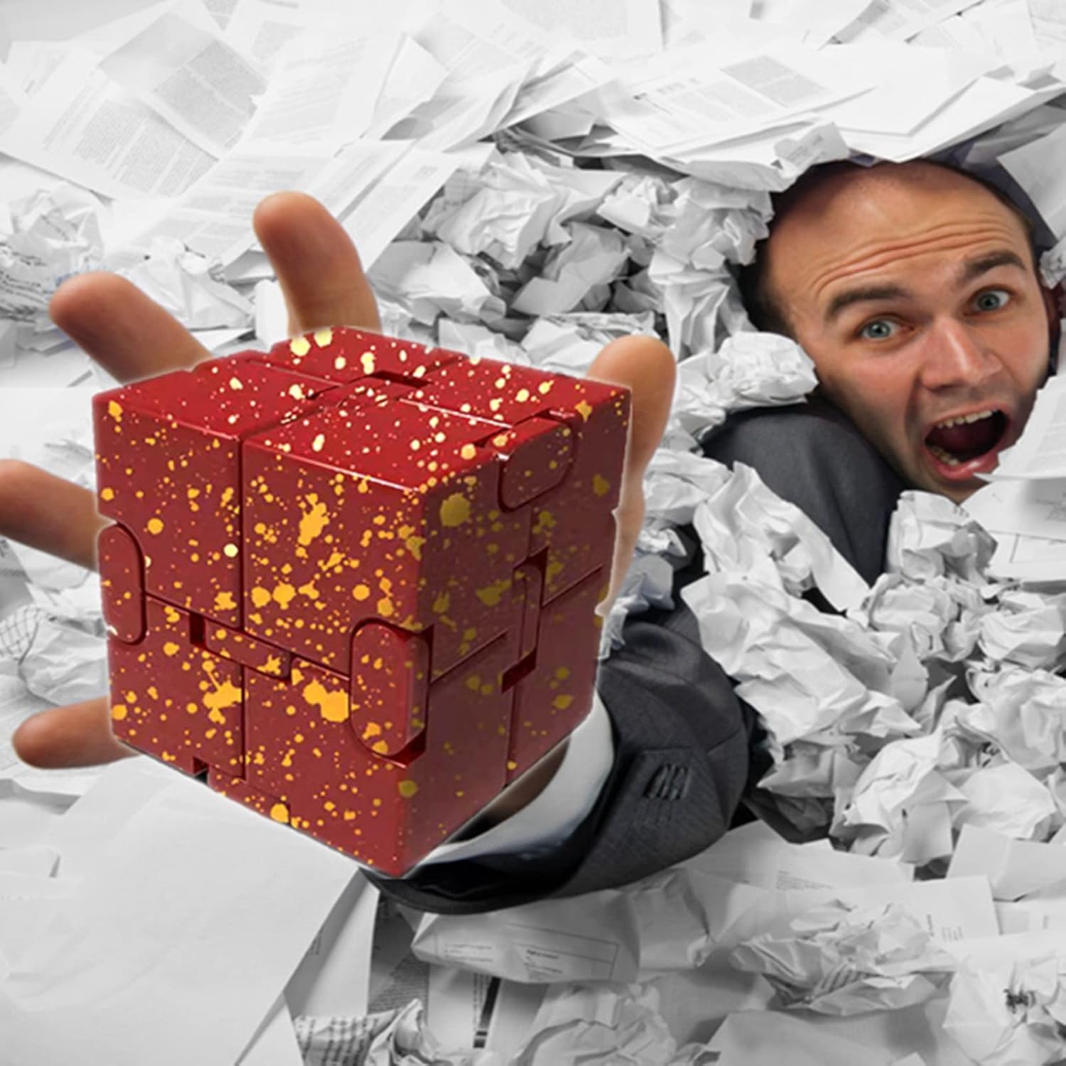Metal Fidget Toys Infinity Cube for Men Gadgets Anxiety Stress Relief Aluminum Alloy Material (RED & Yellow)