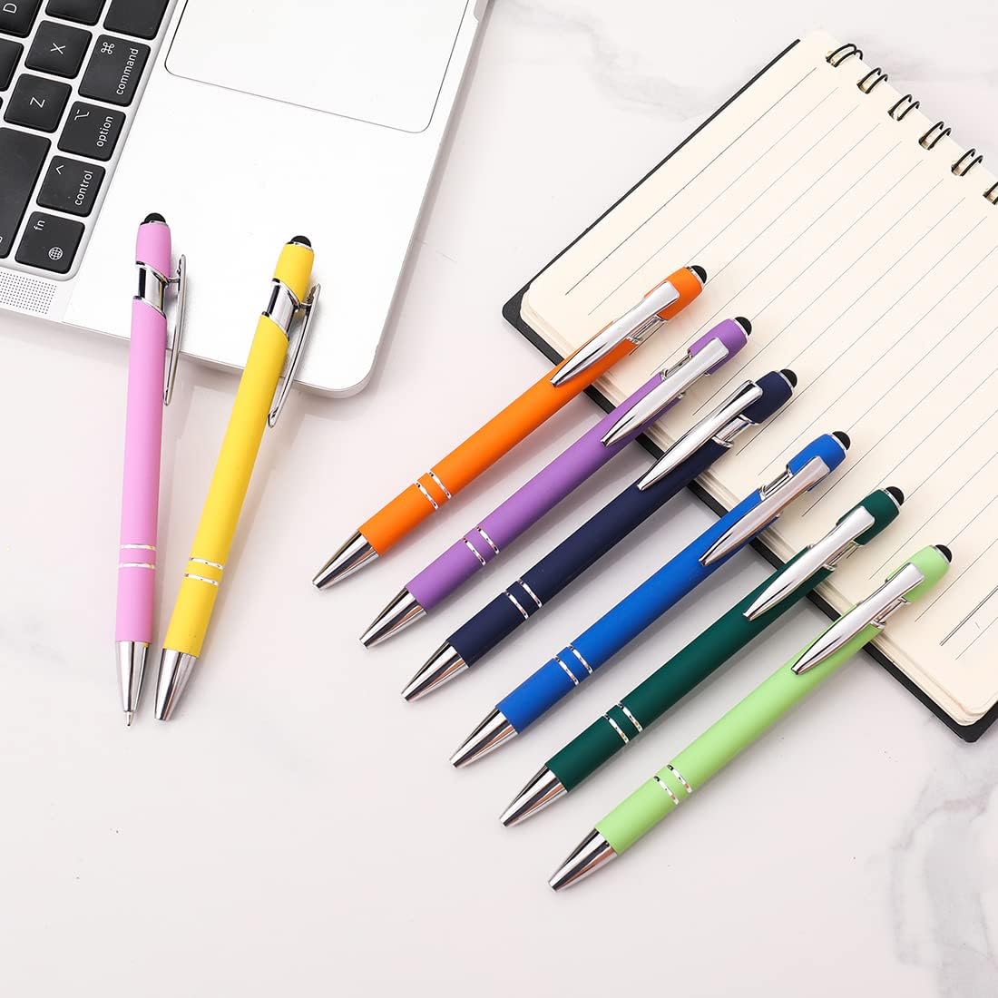 Ballpoint Pen with Stylus Tip, Soft Touch Click Pen, 2 in 1 Metal Pens, Medium Point(Black refills - 20 pcs)…